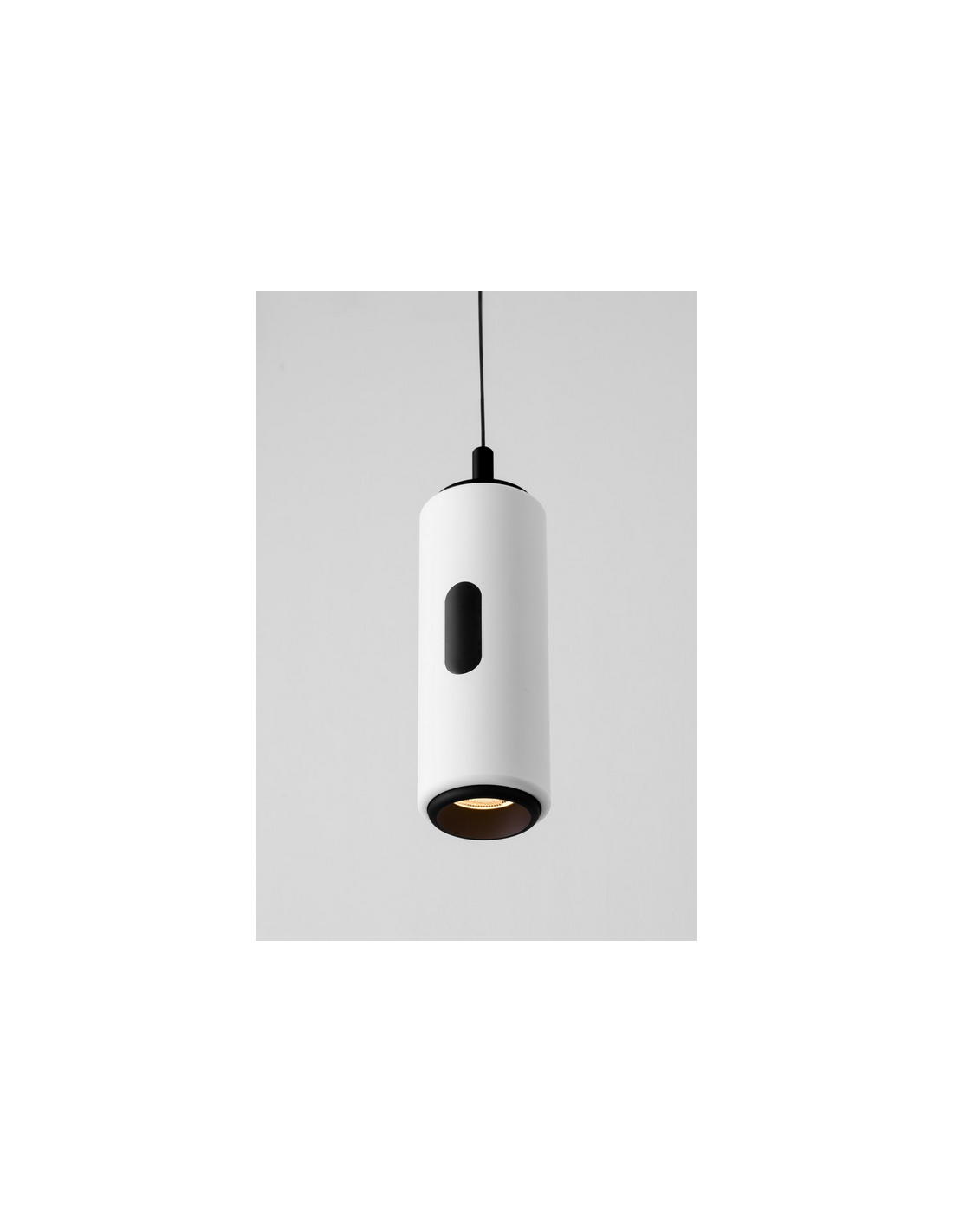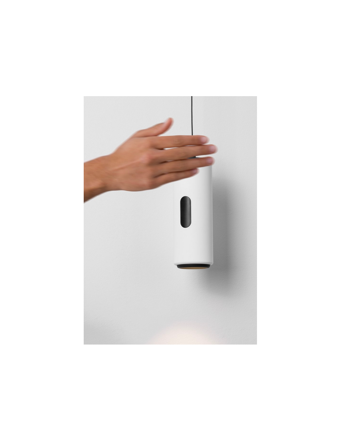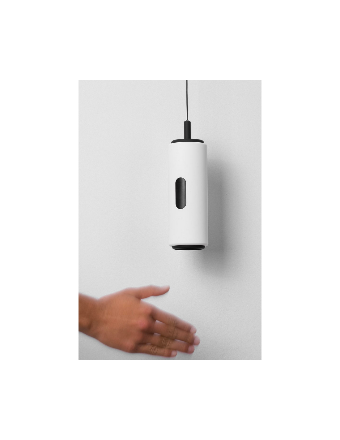 HOLM Loftlampe med dæmpbar sensor, udført i et moderne design fremstillet i sort- og satineret hvidlakeret aluminium. Lampen måler 300 cm i højden (max.) og anvender 12W LED lyskilde (Inkl.). Lyset dæmpes ved blot at køre hånden forbi lampeskærmen.