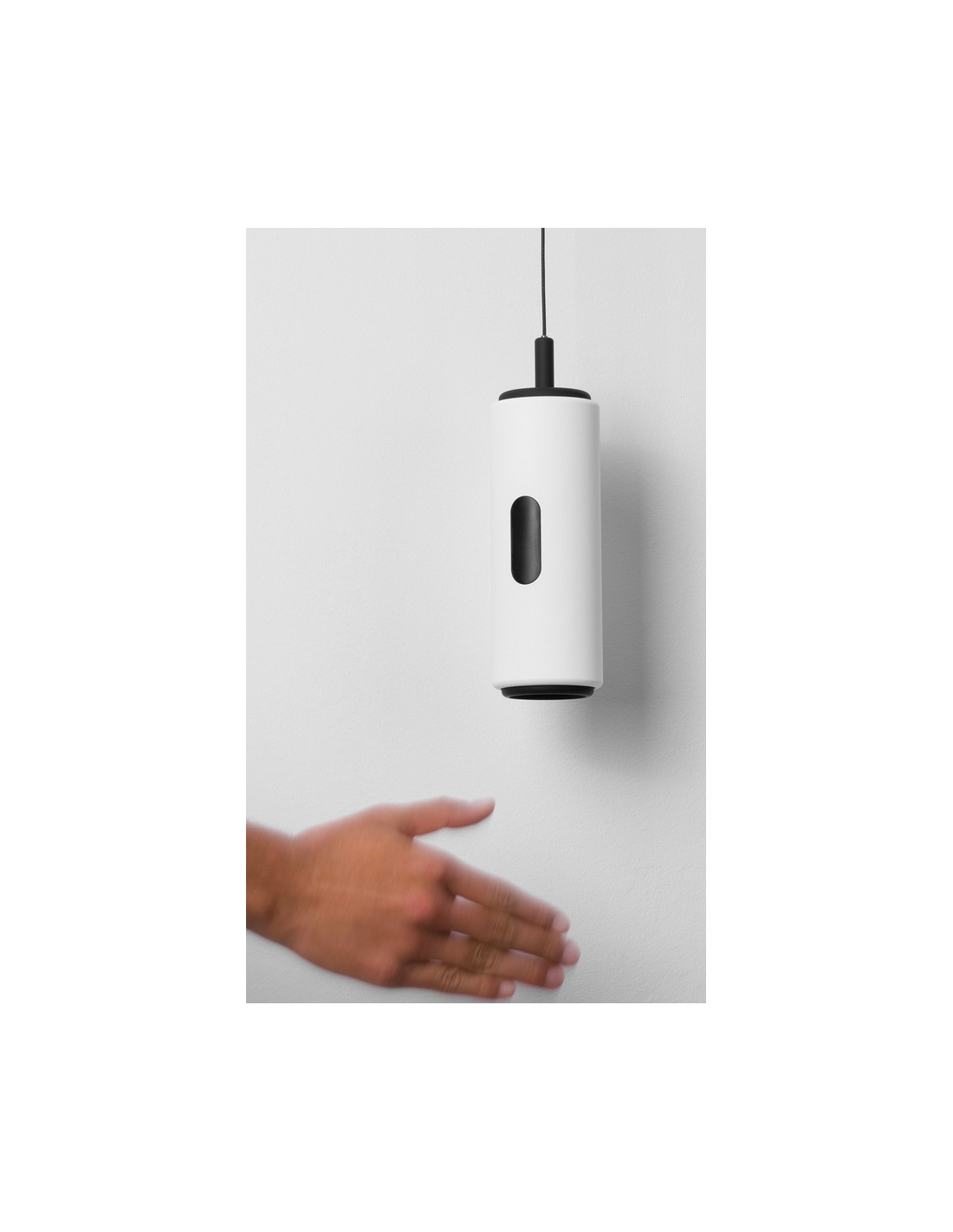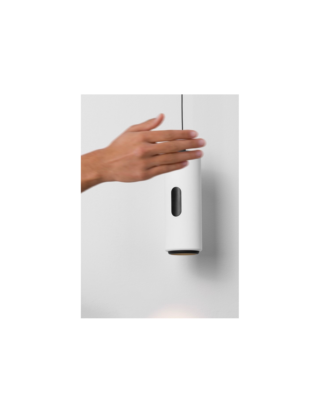 HOLM Loftlampe med dæmpbar sensor, udført i et moderne design fremstillet i sort- og satineret sortlakeret aluminium. Lampen måler 300 cm i højden (max.) og anvender 12W LED lyskilde (Inkl.). Lyset dæmpes ved blot at køre hånden forbi lampeskærmen.