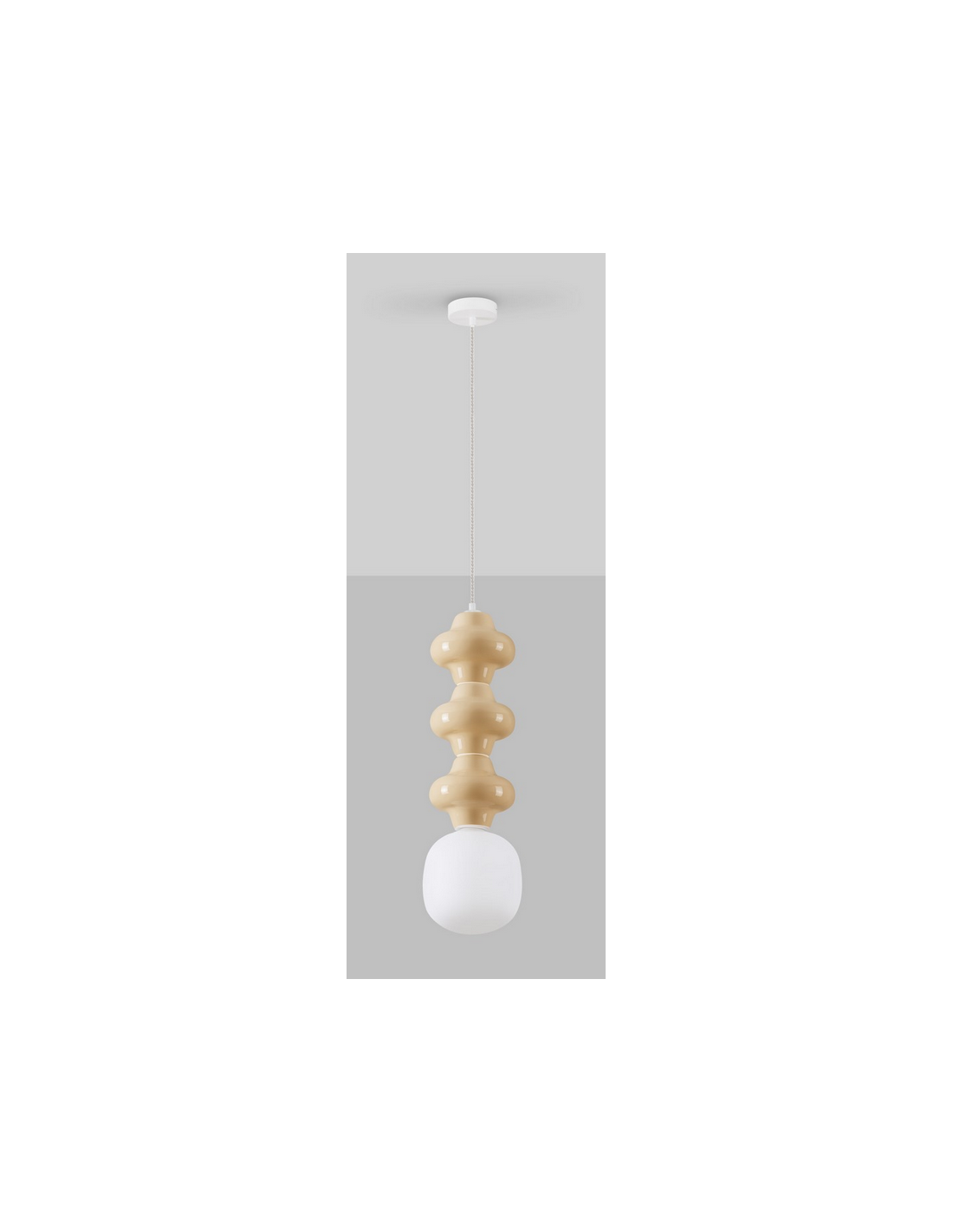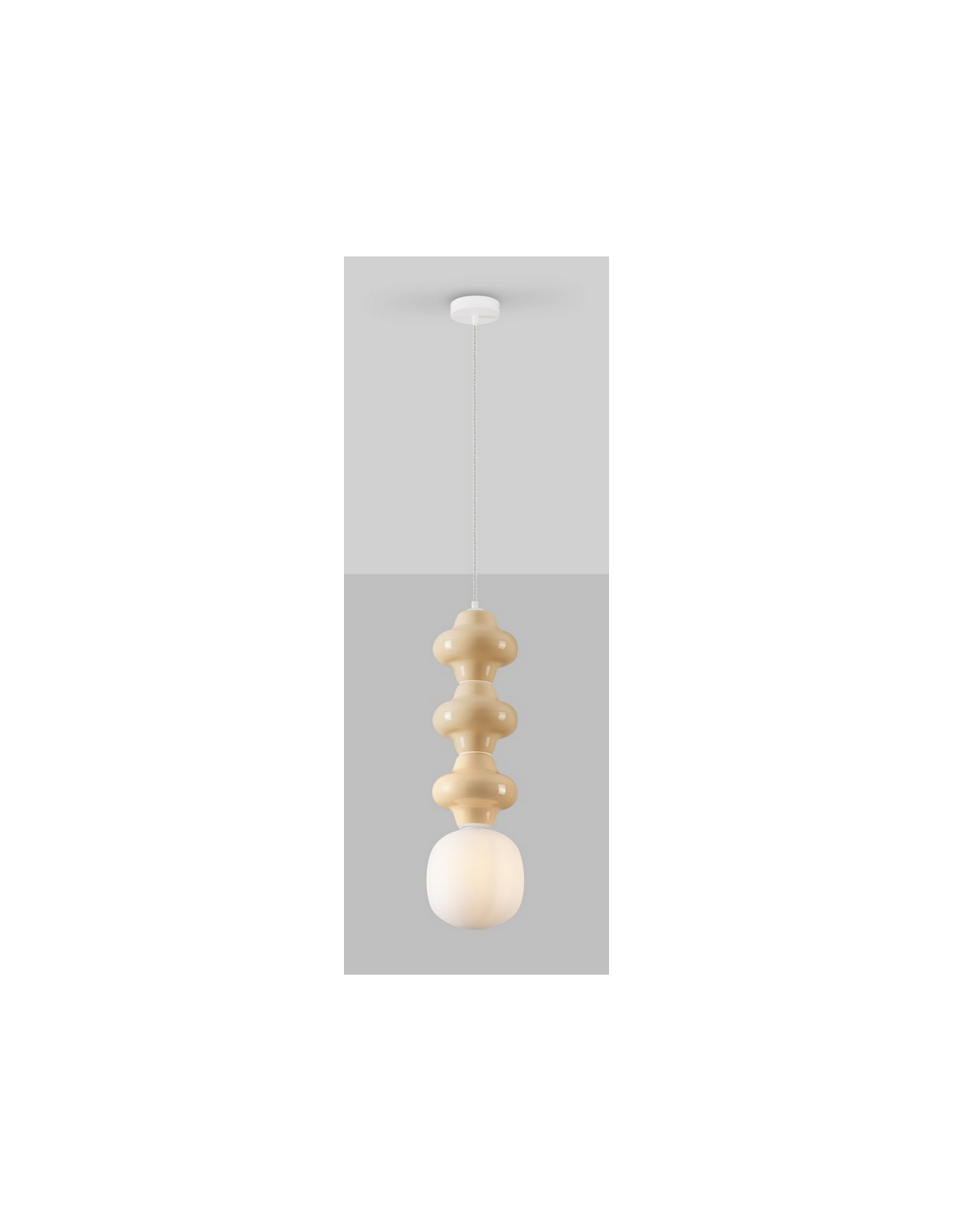 CLIO Loftlampe udført i et retropræget design fremstillet i hvidlakeret metal samt gul porcelæn og hvid opalglas. Lampen måler 240 cm i højden og anvender 1 x E14 lyskilde (Ekskl.).