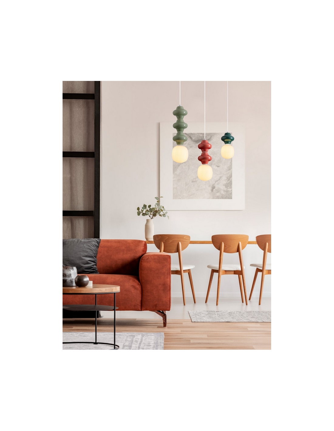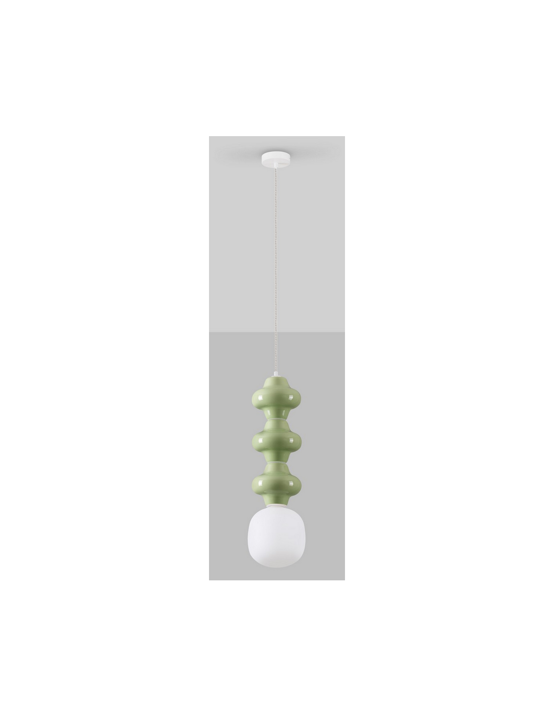 CLIO Loftlampe udført i et retropræget design fremstillet i hvidlakeret metal samt grøn porcelæn og hvid opalglas. Lampen måler 240 cm i højden og anvender 1 x E14 lyskilde (Ekskl.).
