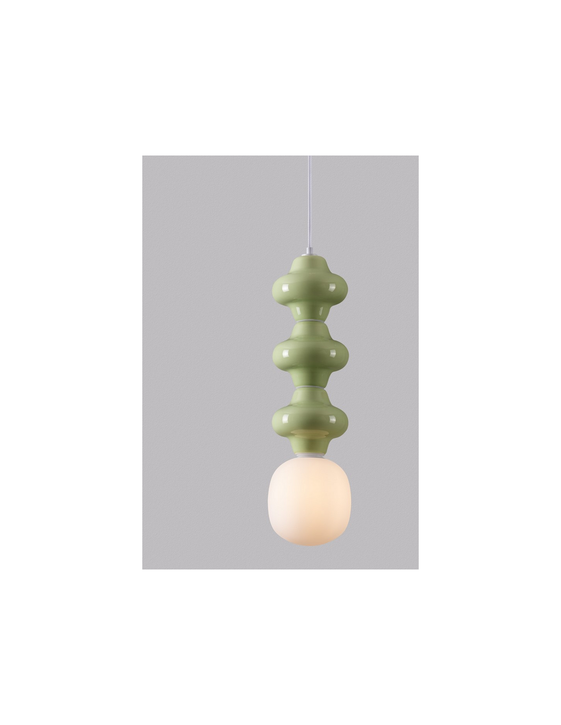 CLIO Loftlampe i porcelæn og opalglas Ø18 cm 1 x E14 - Grøn/Opalhvid