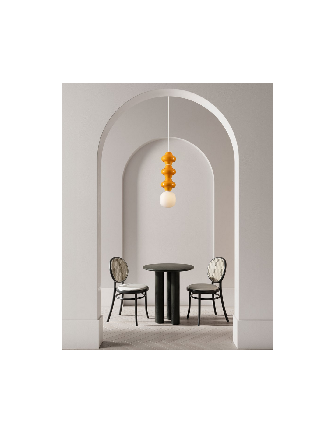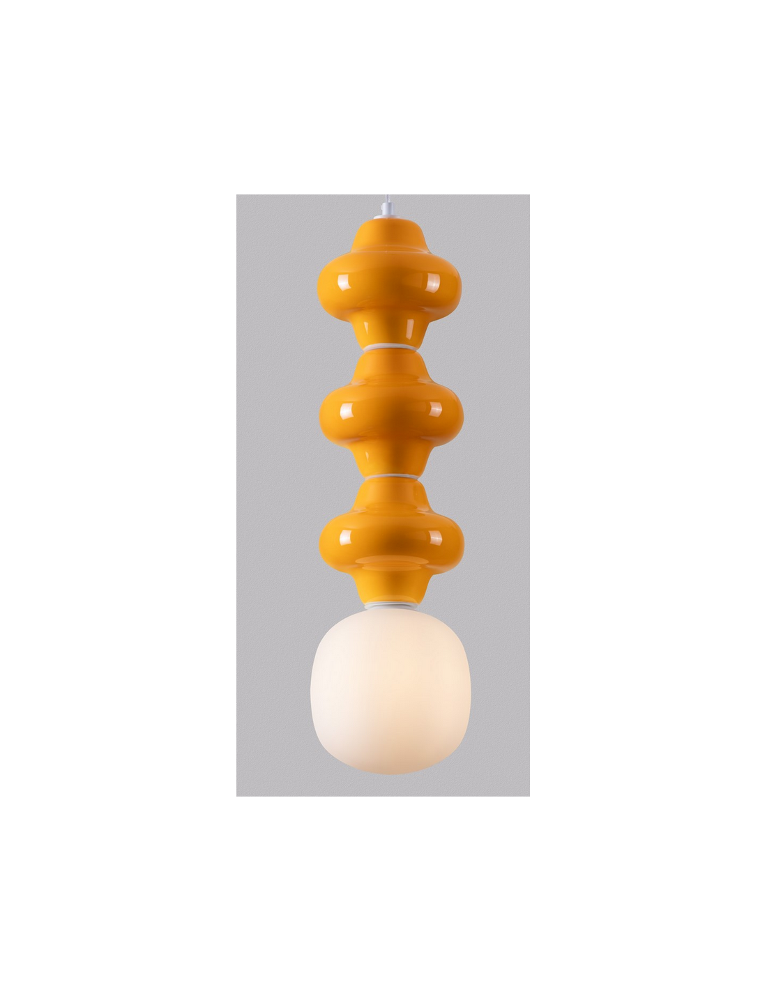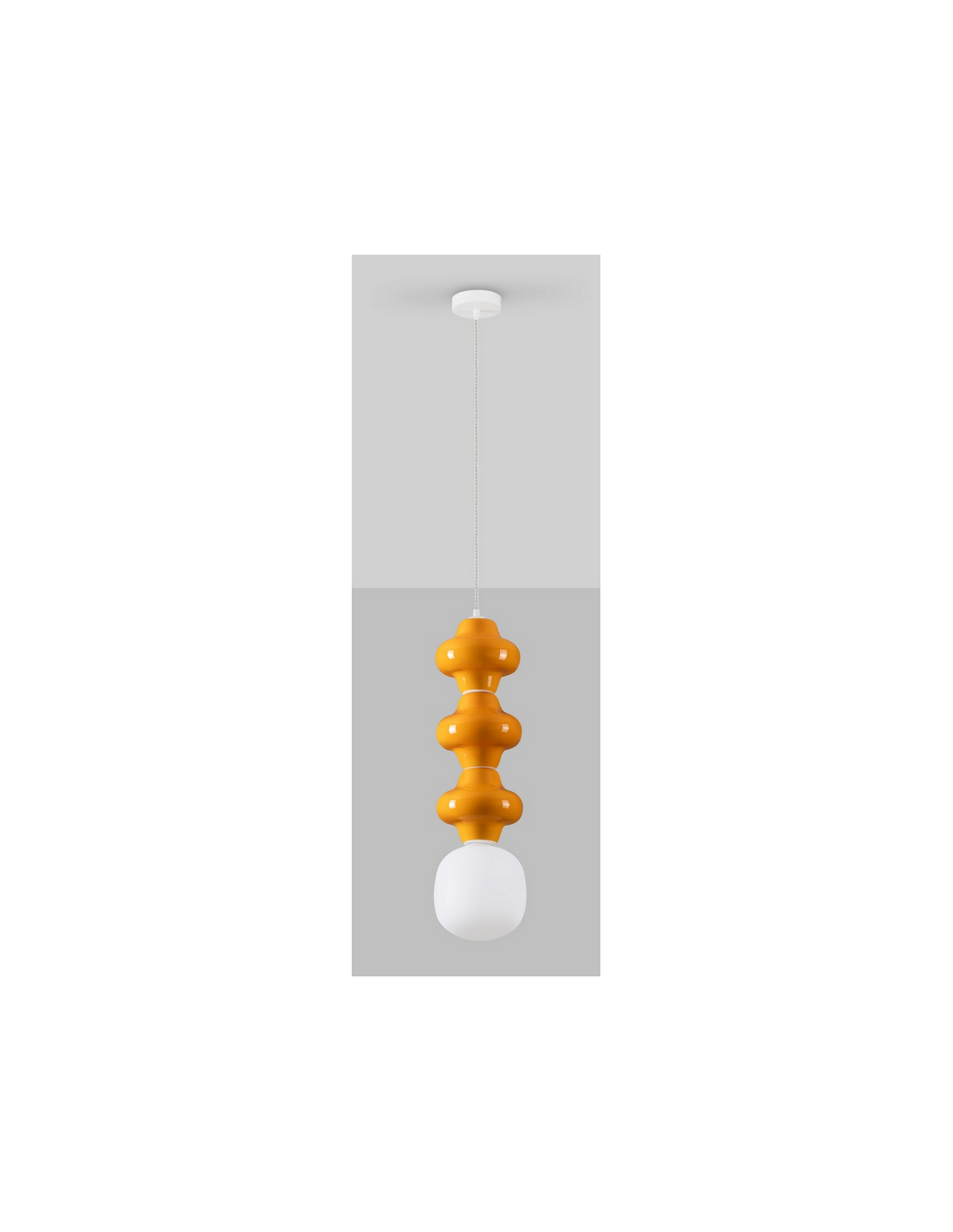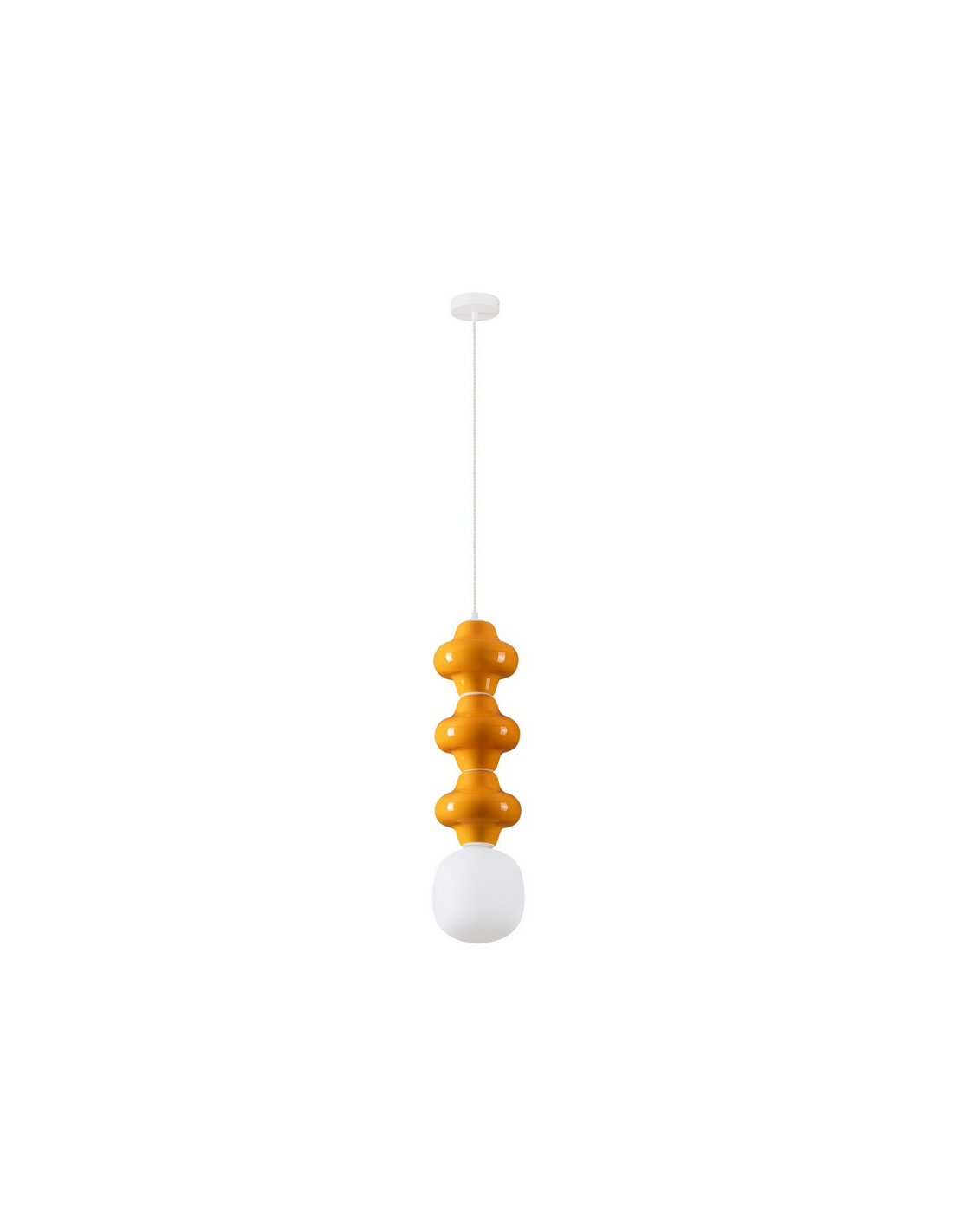 CLIO Loftlampe udført i et retropræget design fremstillet i hvidlakeret metal samt orange porcelæn og hvid opalglas. Lampen måler 240 cm i højden og anvender 1 x E14 lyskilde (Ekskl.).
