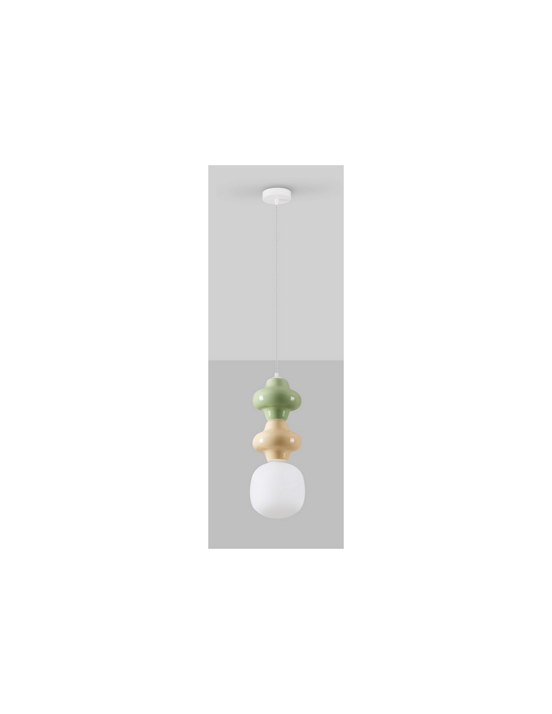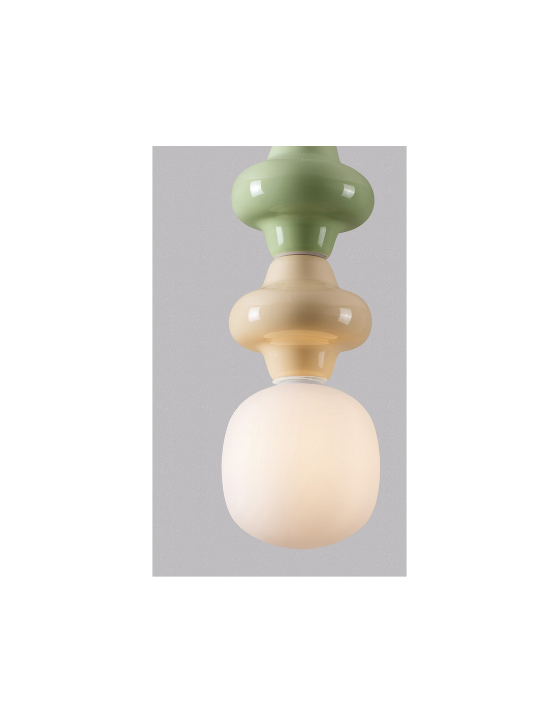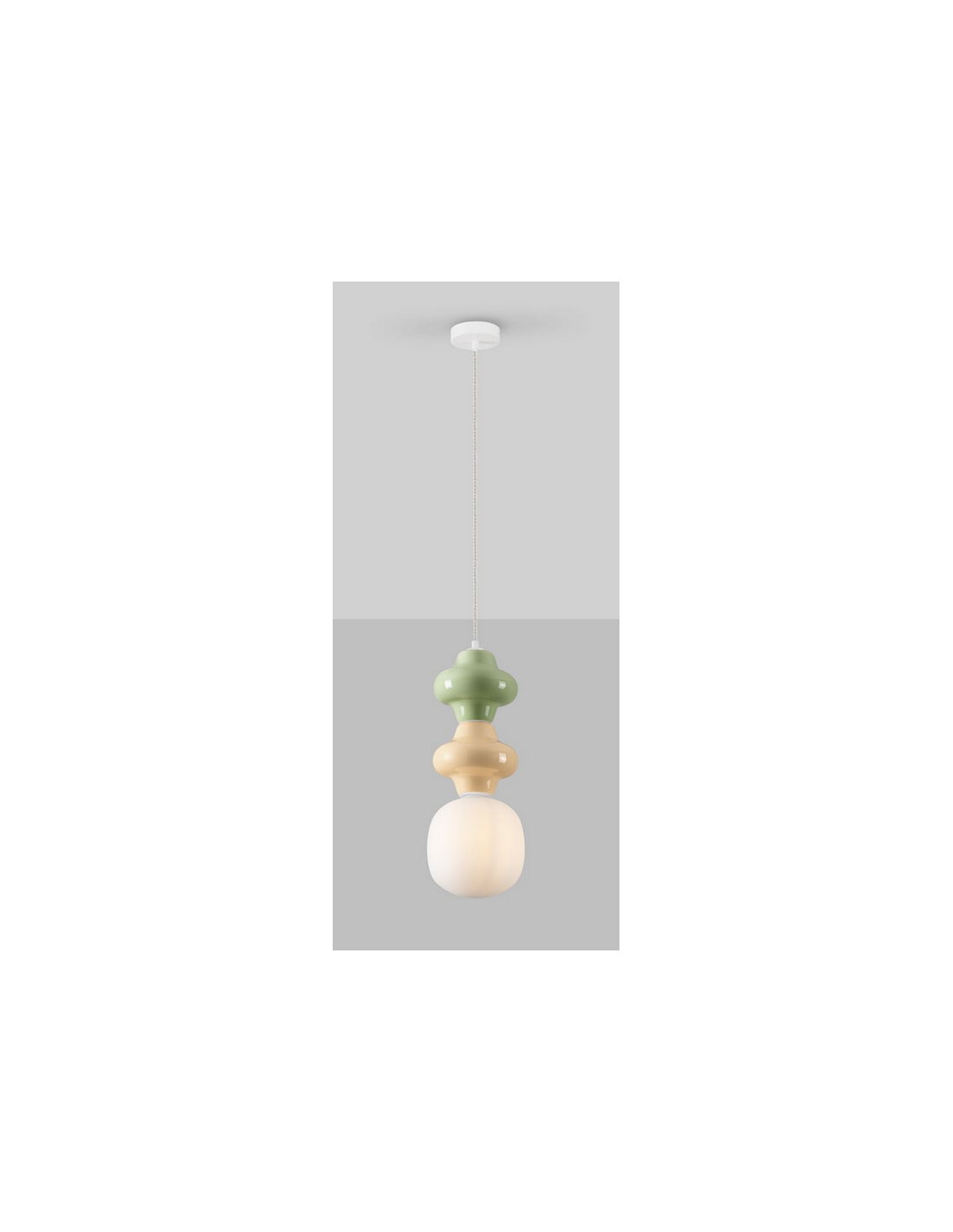 CLIO Loftlampe i porcelæn og opalglas Ø18 cm 1 x E14 - Grøn/Gul/Opalhvid