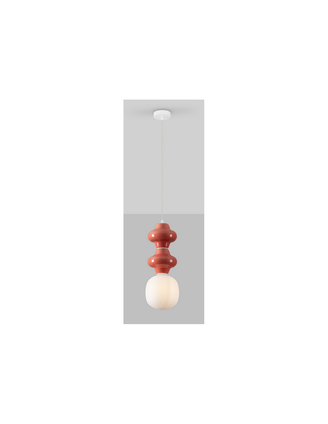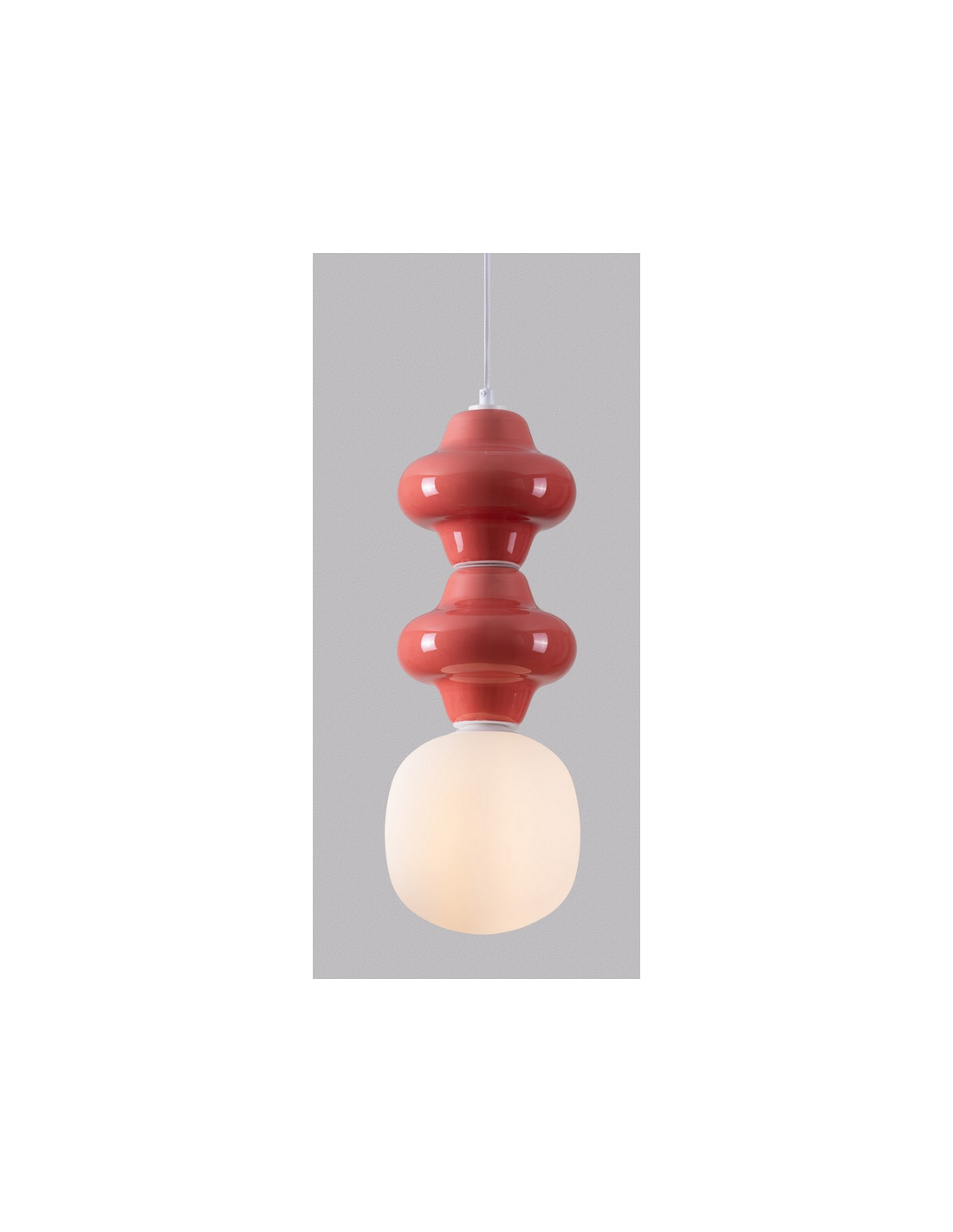 CLIO Loftlampe i porcelæn og opalglas Ø18 cm 1 x E14 - Rød/Opalhvid