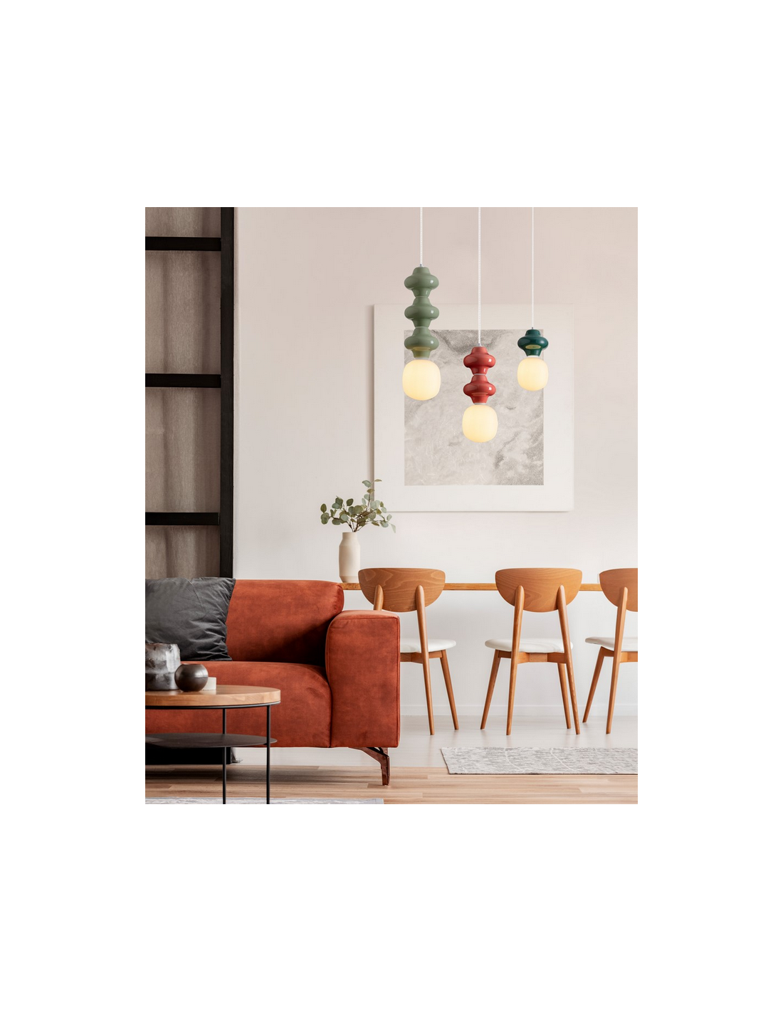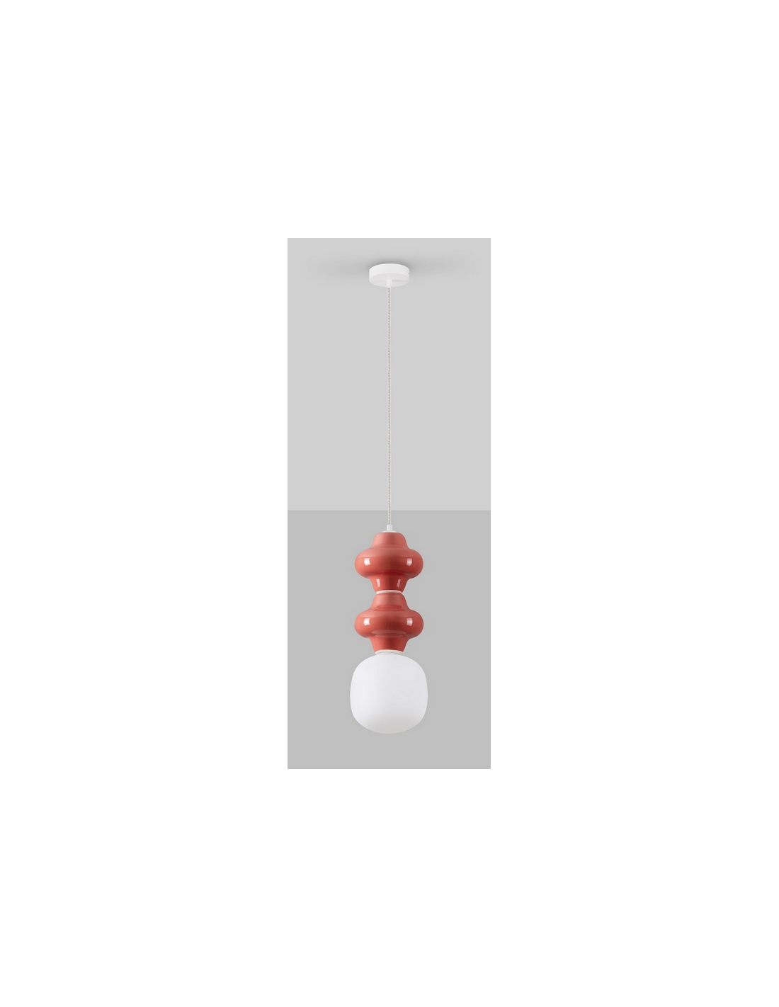 CLIO Loftlampe udført i et retropræget design fremstillet i hvidlakeret metal samt rød porcelæn og hvid opalglas. Lampen måler 215 cm i højden og anvender 1 x E14 lyskilde (Ekskl.).