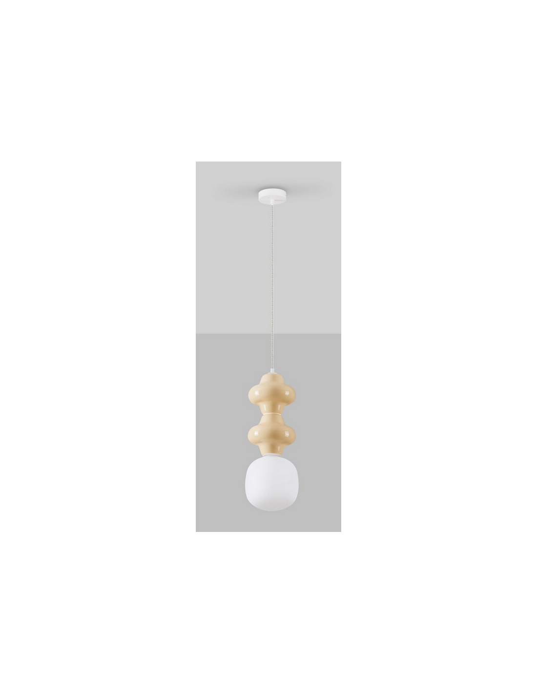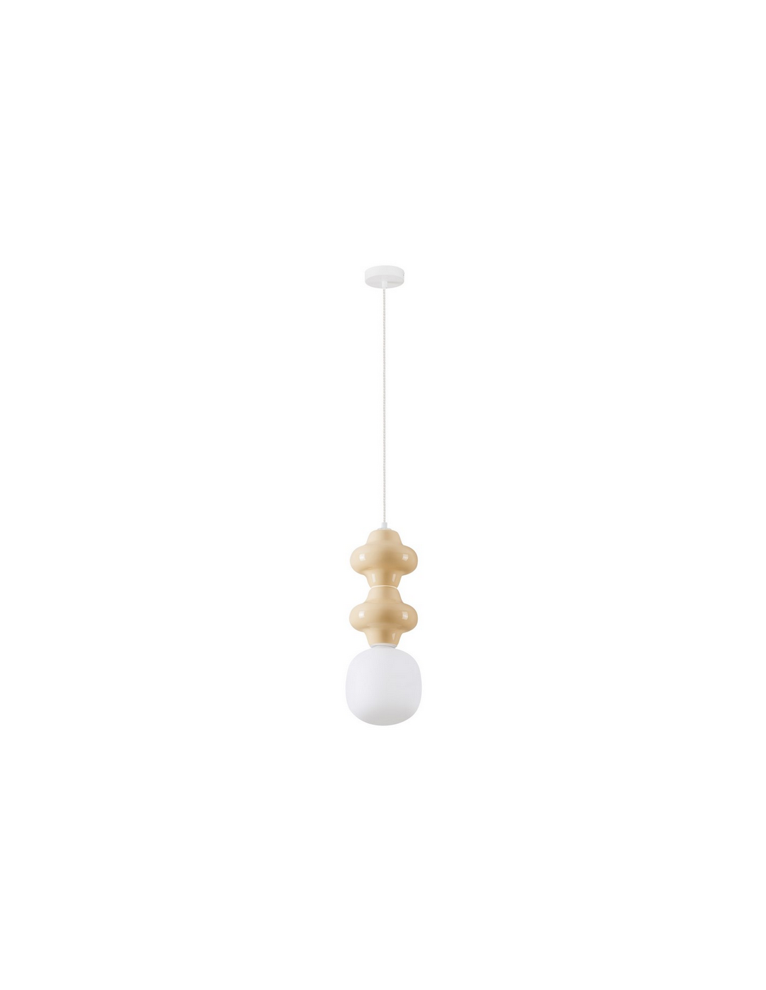 CLIO Loftlampe udført i et retropræget design fremstillet i hvidlakeret metal samt gul porcelæn og hvid opalglas. Lampen måler 215 cm i højden og anvender 1 x E14 lyskilde (Ekskl.).