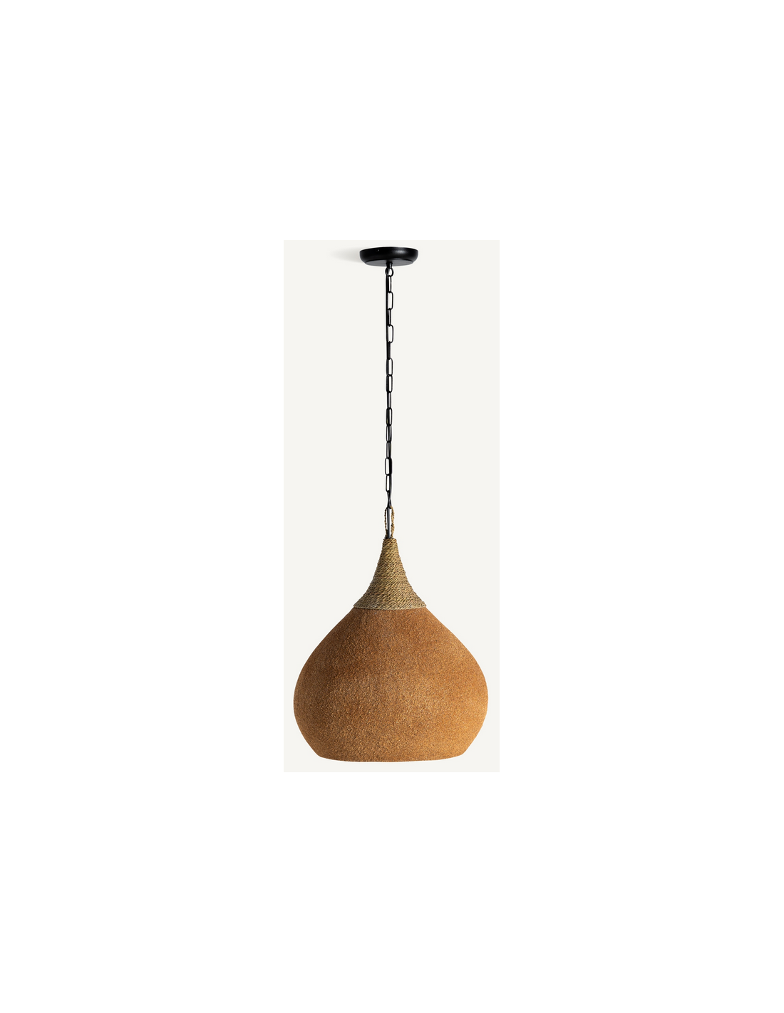 SWOLGE Loftlampe udført i et design, fremstillet af naturfarvet jute og terracottafarvet resin. Lampen måler 47 + 100 cm i højden og med skærmdiameter på 40 cm. Lampen anvender 1 x E27 lyskilde (Ekskl.).