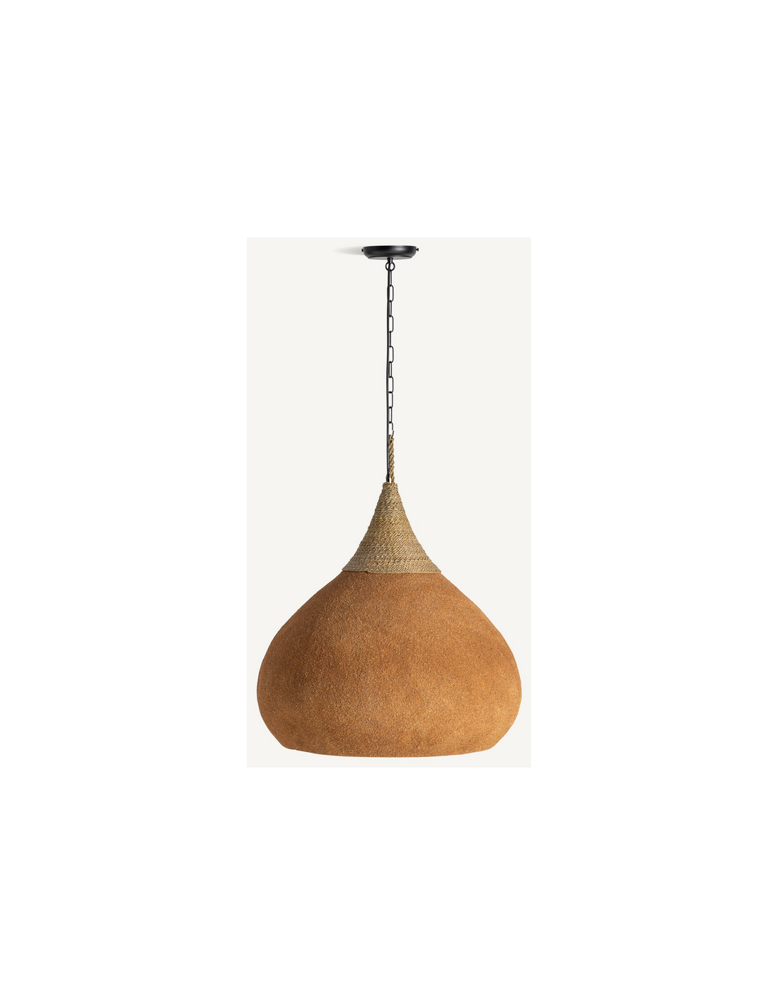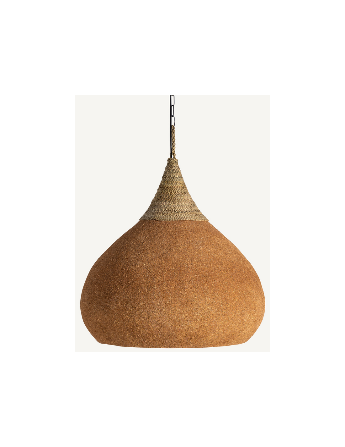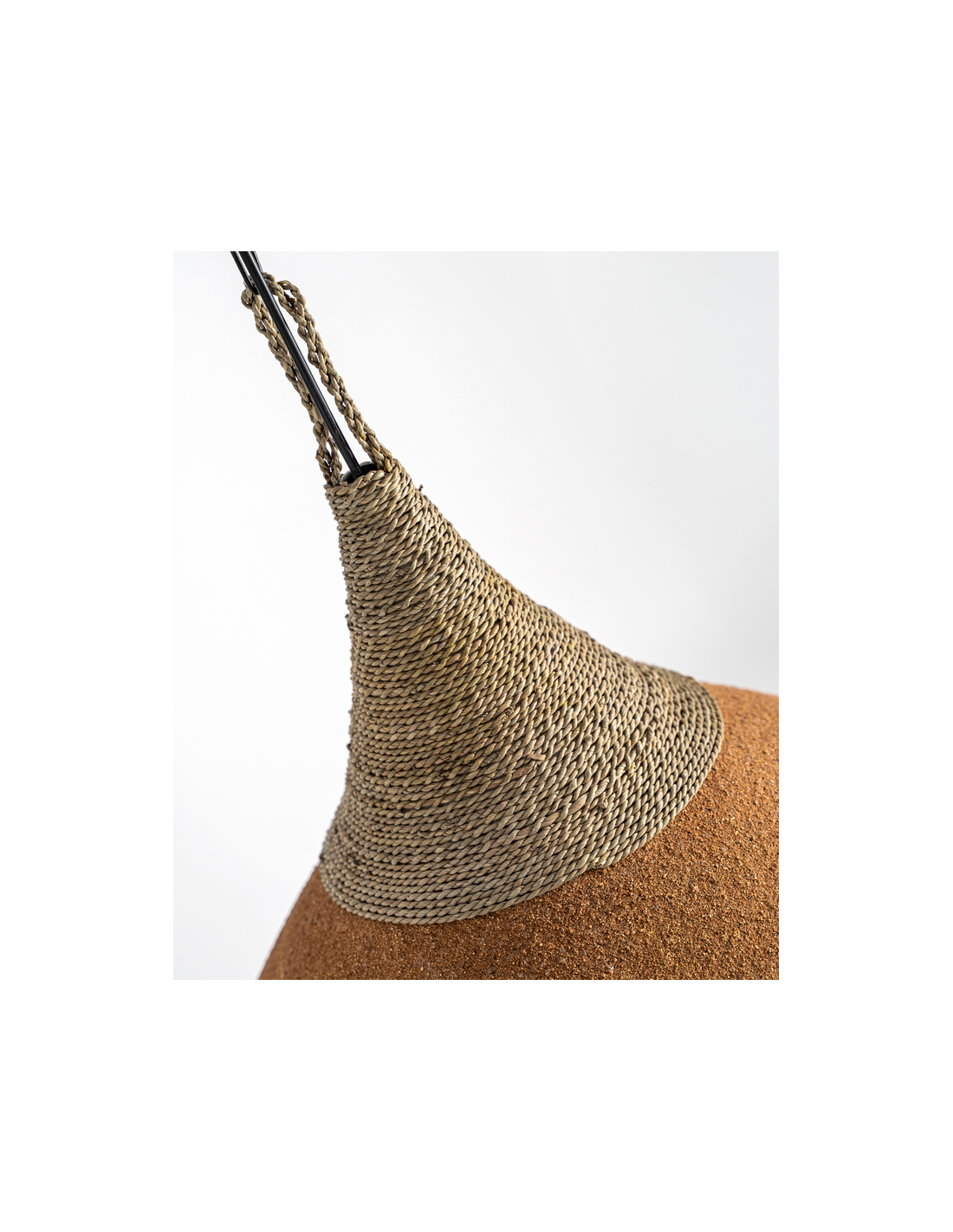 SWOLGE Loftlampe udført i et design, fremstillet af naturfarvet jute og terracottafarvet resin. Lampen måler 63 + 100 cm i højden og med skærmdiameter på 60 cm. Lampen anvender 1 x E27 lyskilde (Ekskl.).
