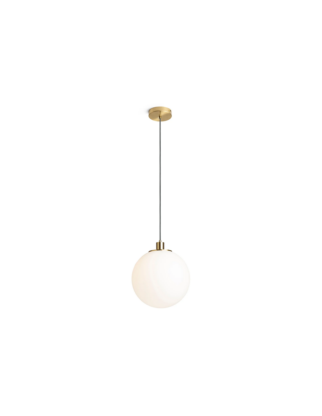 BOULDER Loftlampe udført i et stilrent design af børstet messinglakeret metal og opalhvid glas. Lampen måler 30 cm i diameter og 150 cm i højden. Lampen anvender 1 x E27 lyskilde (Ekskl.).