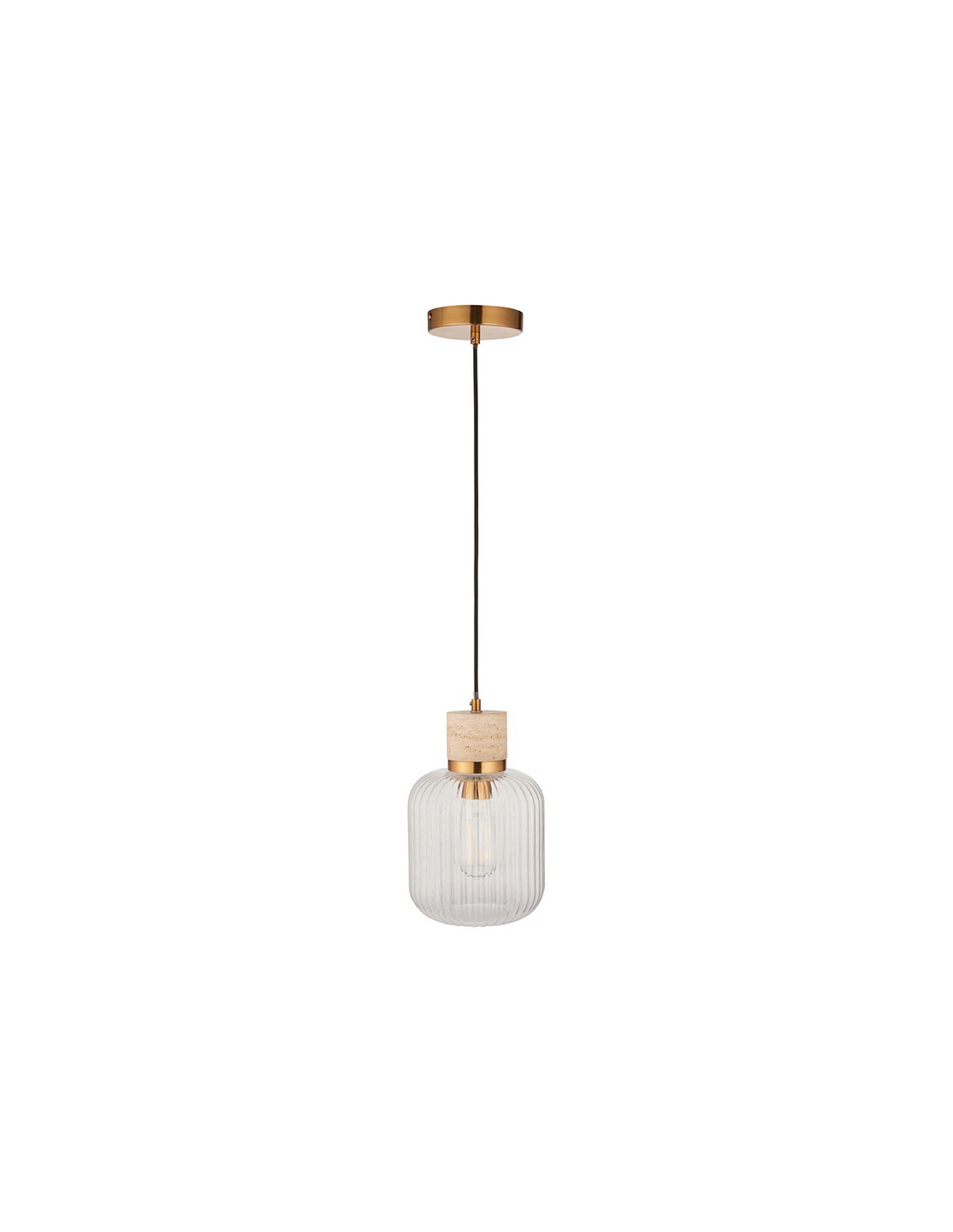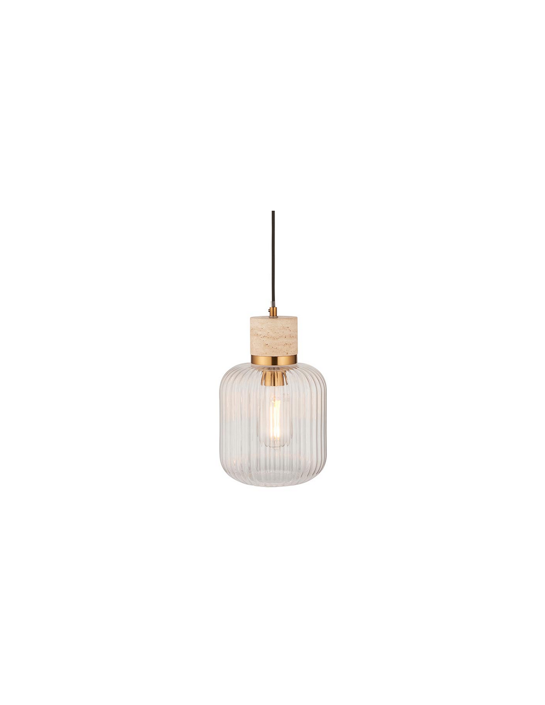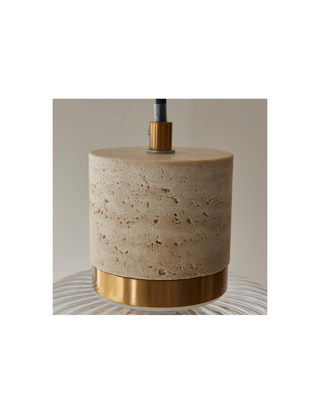 TRAVI Loftlampe i travertin, stål og glas Ø18,5 cm 1 x E27 - Antik messing/Travertin/Klar rillet