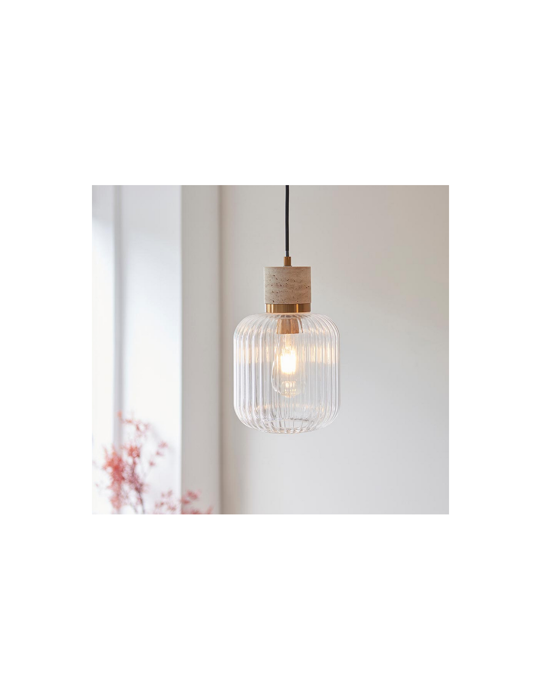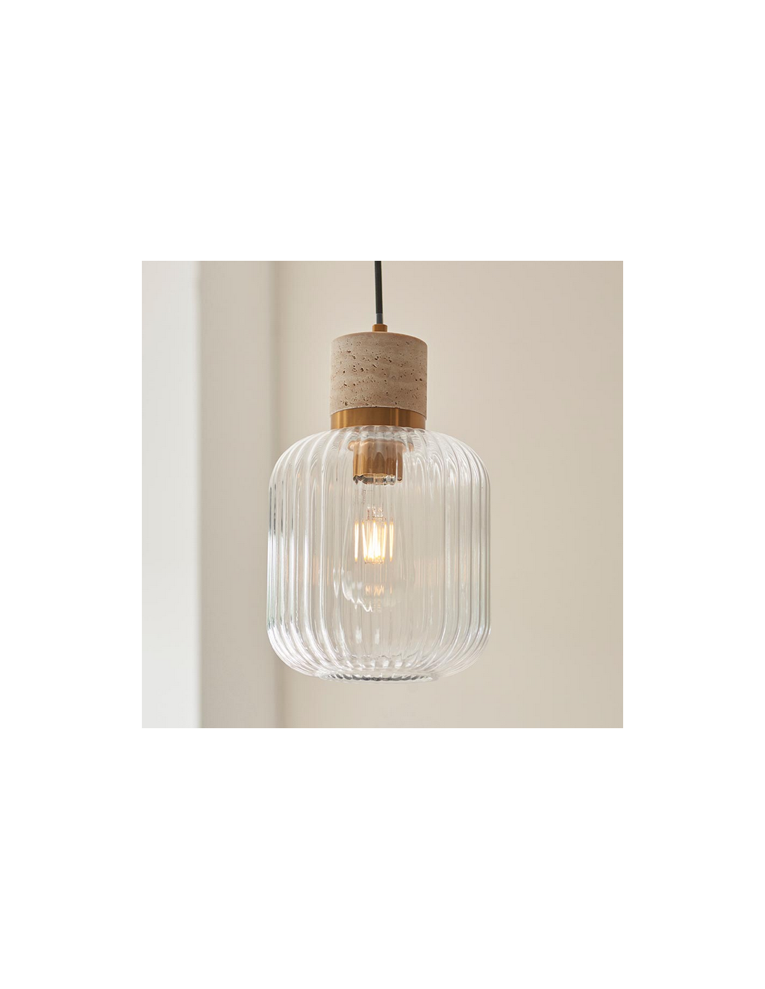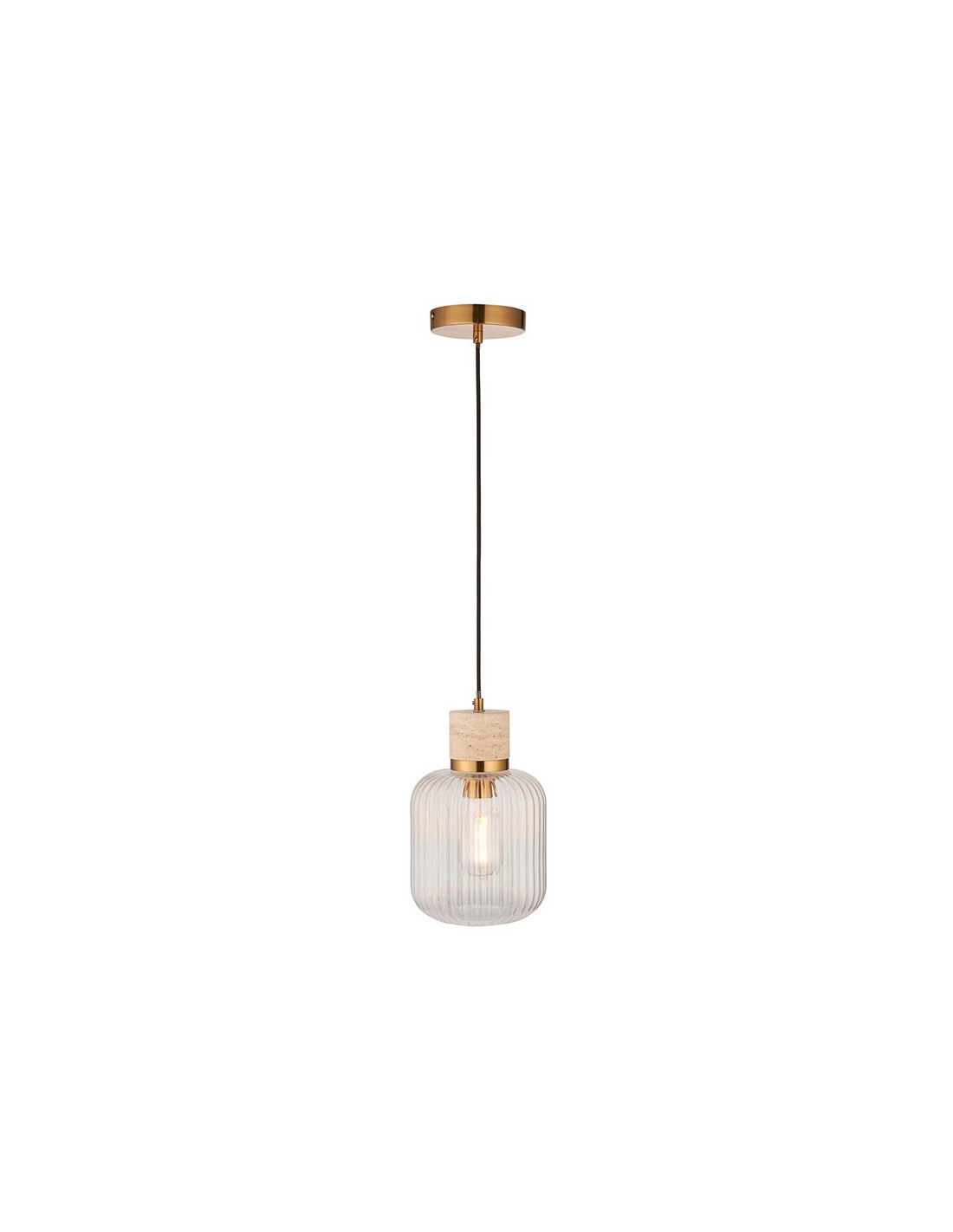 TRAVI Loftlampe i travertin, stål og glas Ø18,5 cm 1 x E27 - Antik messing/Travertin/Klar rillet
