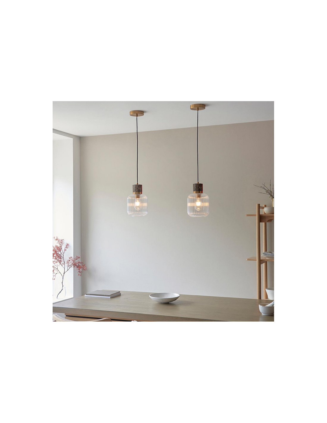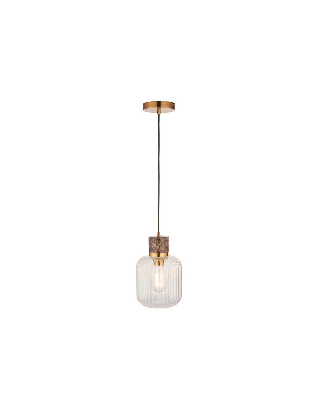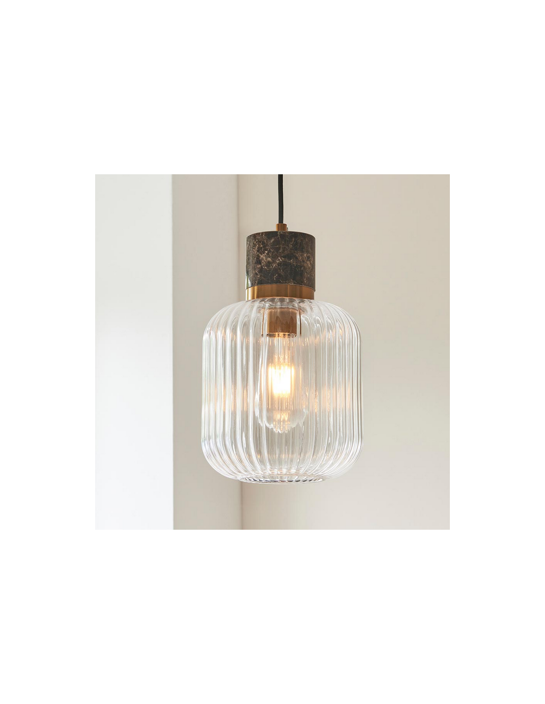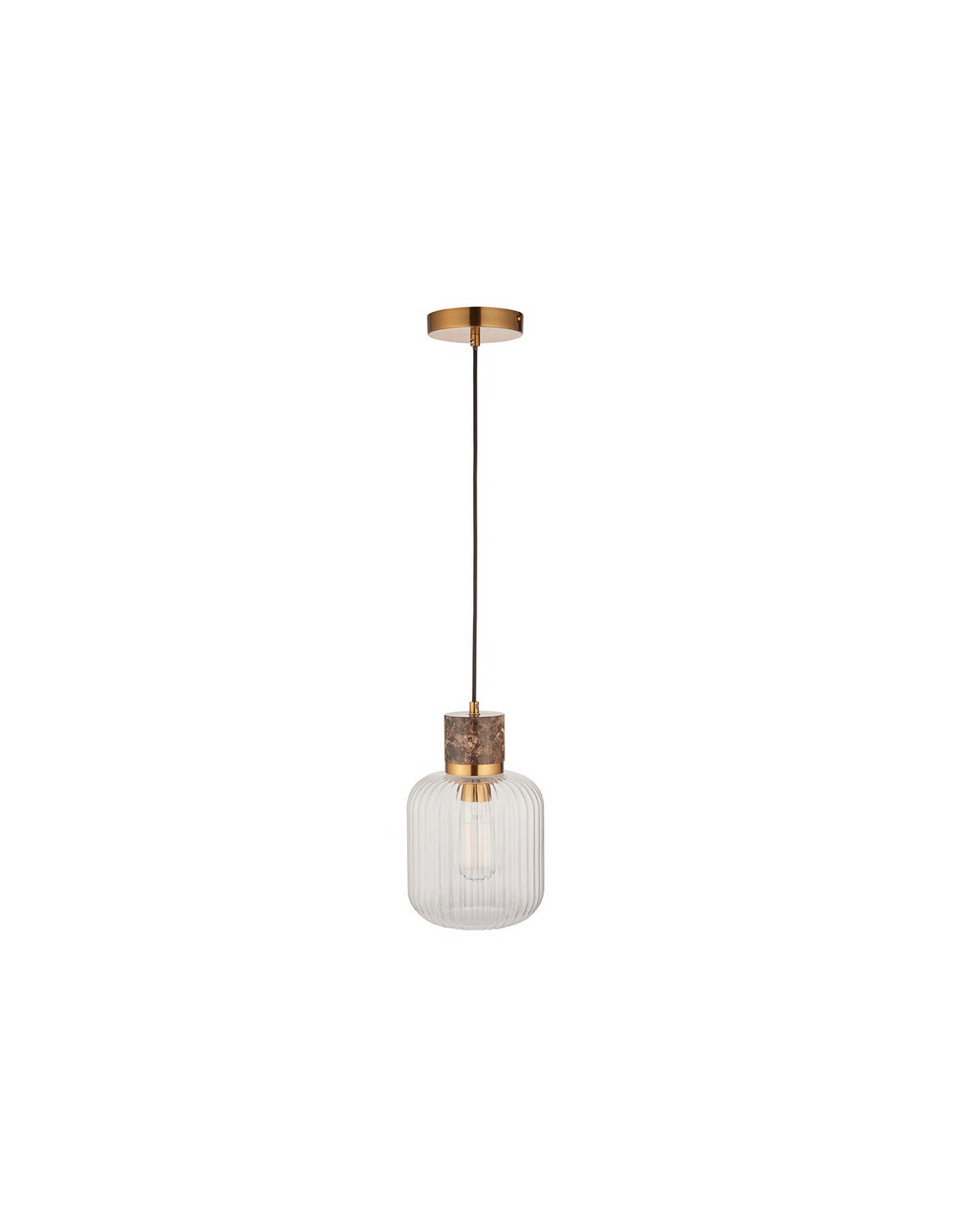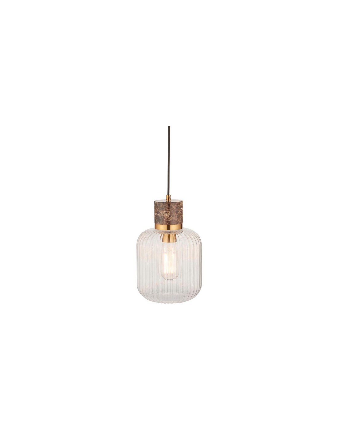 TRAVI Loftlampe i marmor, stål og glas Ø18,5 cm 1 x E27 - Antik messing/Brun marmor/Klar rillet