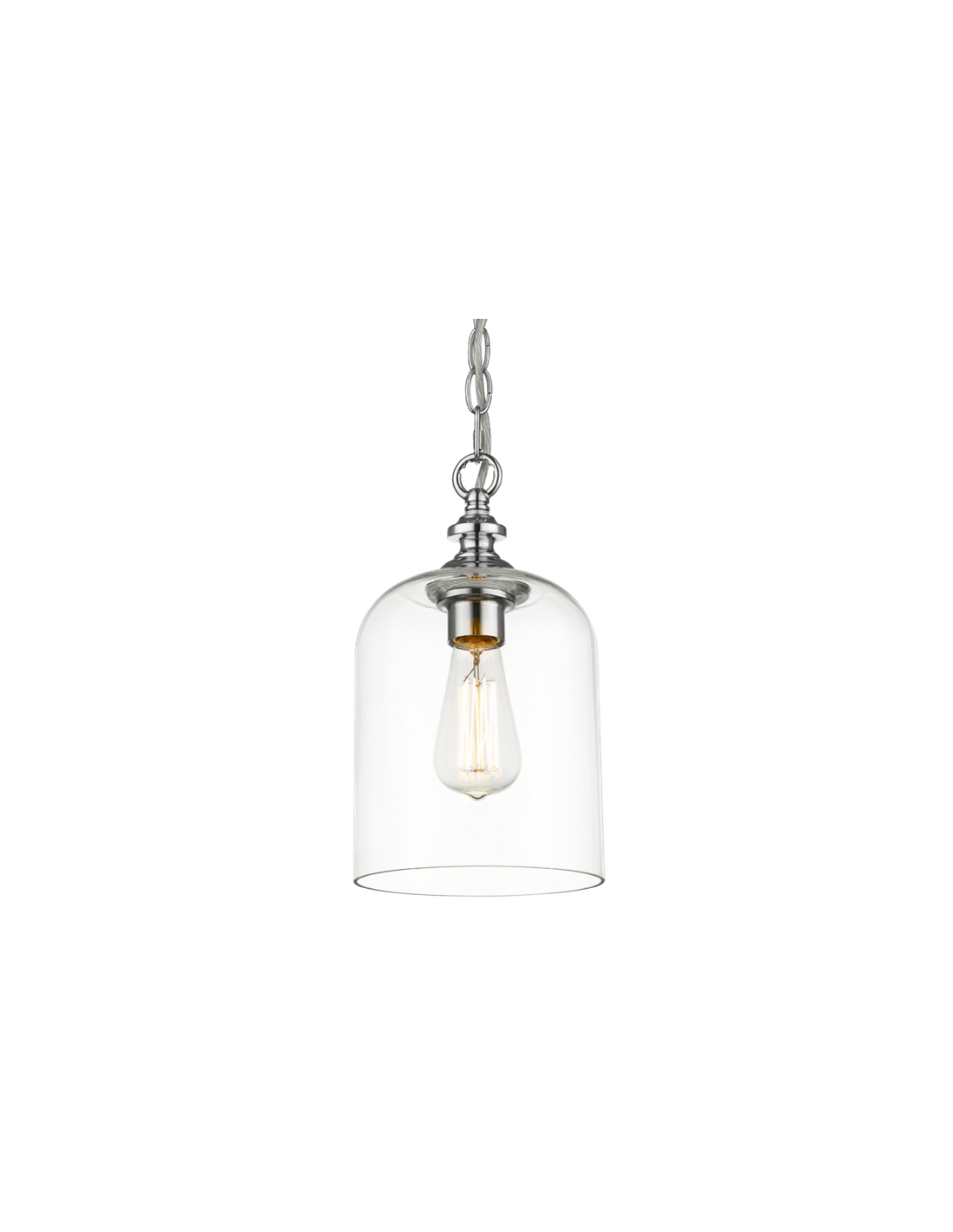 PRAGUE Loftlampe udført i et stilrent design af kromlakeret metal og klart glas. Lampen måler 17,5 cm i diameter og 31 - 135 cm i højden. Lampen anvender 1 x E27 lyskilde (Ekskl.).