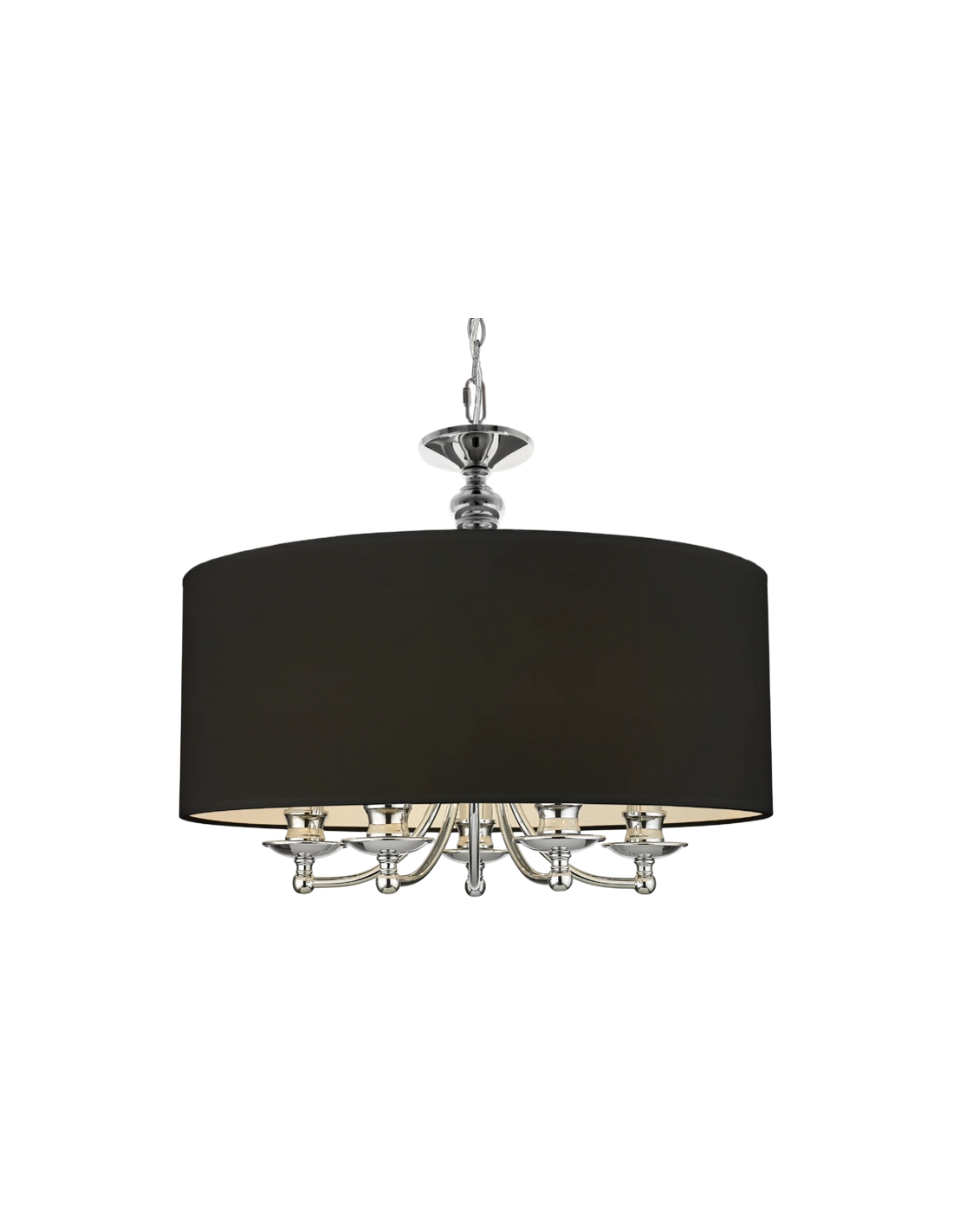 ABU DHABI Loftlampe udført i et design af kromfarvet metal og med skærm i sort polyester. Lampen måler 45 - 152 cm i højden og 50 cm i skærmdiameter og anvender 5 x E14 lyskilder (Ekskl.).