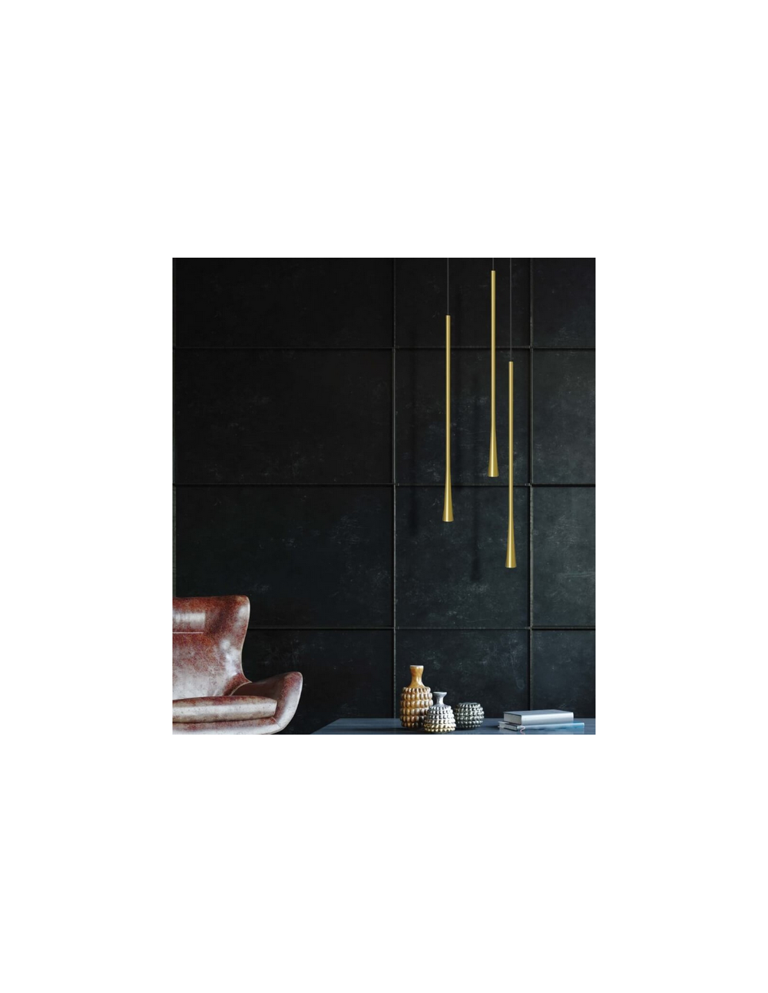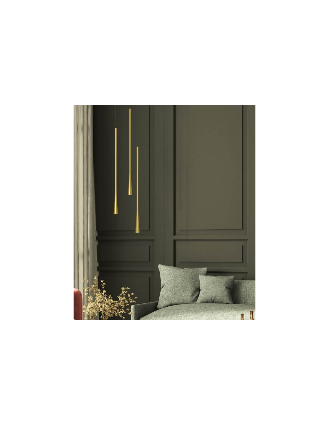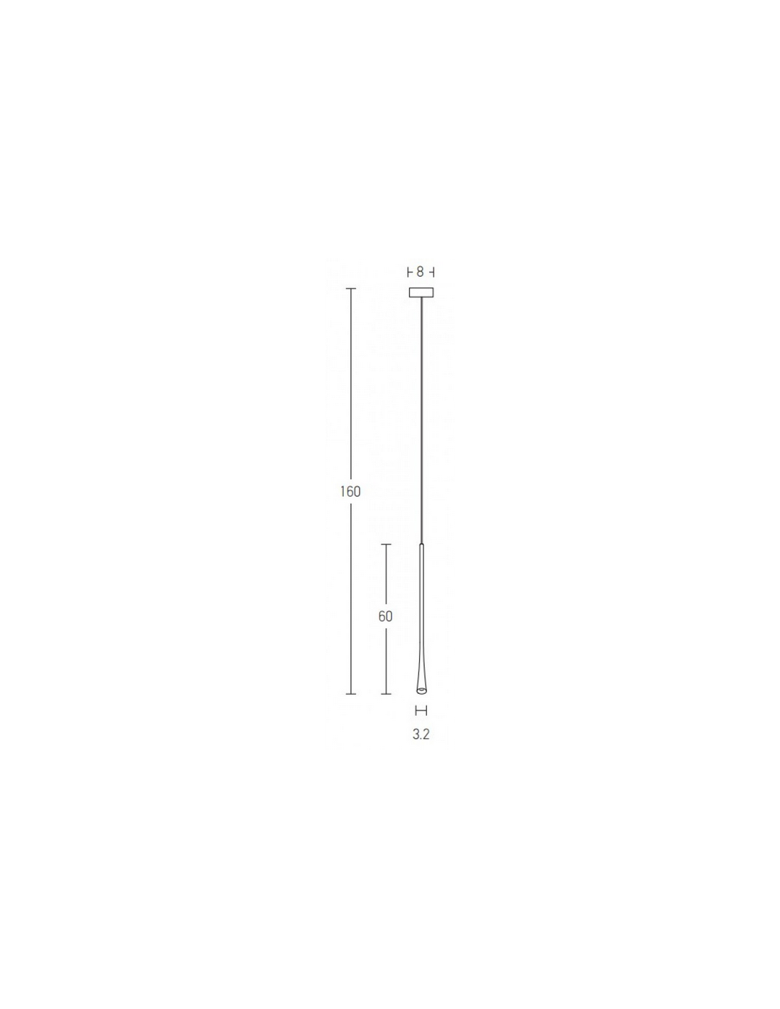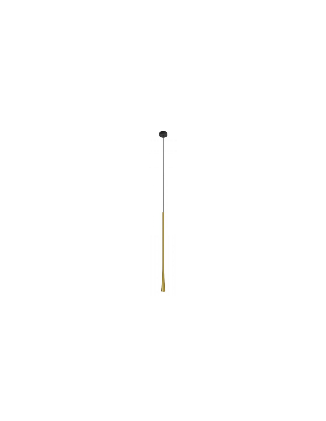 Loftlampe udført i et moderne slimline design af børstet messinglakeret aluminium. Loftlampen måler 3,5 cm i diameter og op til 160 cm i højden. Lampen anvender 6W indbygget LED lyskilde.