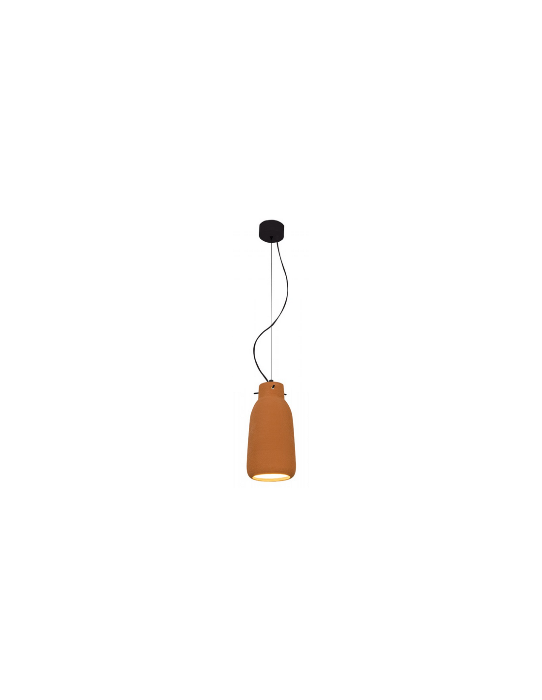 Loftlampe udført i et moderne design af mat sortlakeret aluminium og terracotta farvet ler. Loftlampen måler 13 cm i diameter og op til 227 cm i højden. Lampen anvender 1 x E27 lyskilde (Ekskl.).