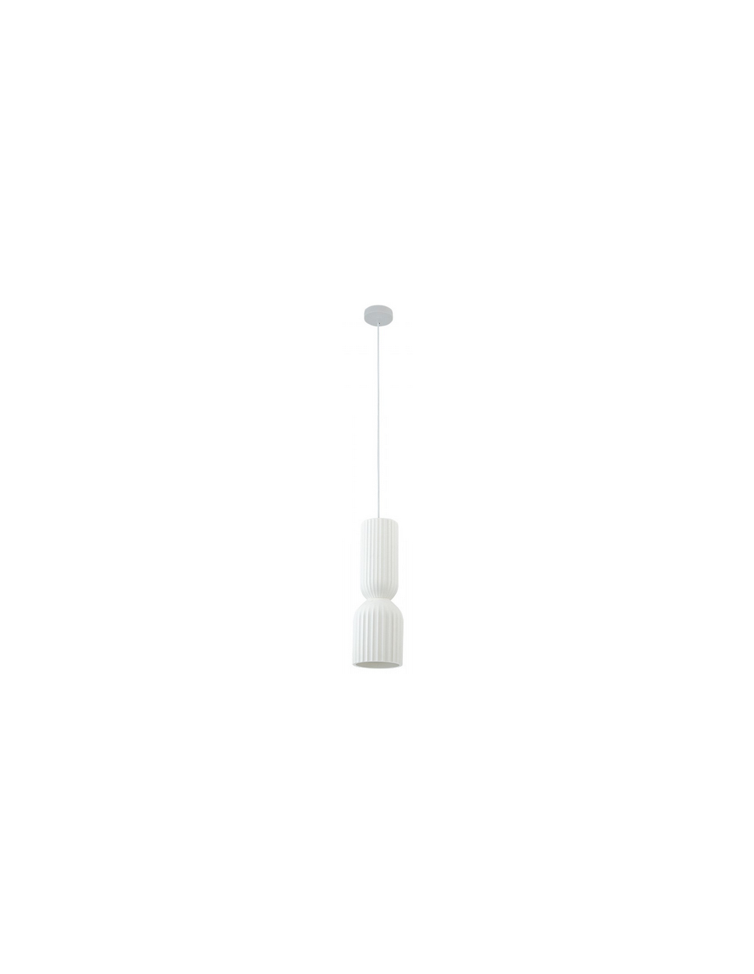 Loftlampe udført i et moderne design af mat sortlakeret aluminium og hvid ler. Loftlampen måler 15 cm i diameter og op til 223,5 cm i højden. Lampen anvender 1 x E27 lyskilde (Ekskl.).