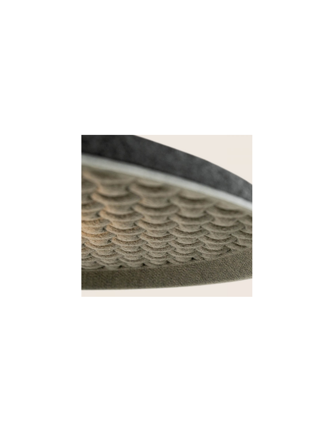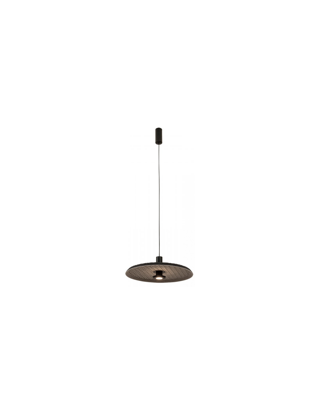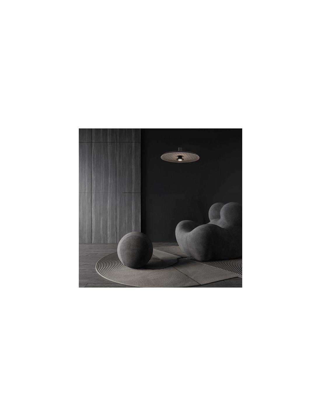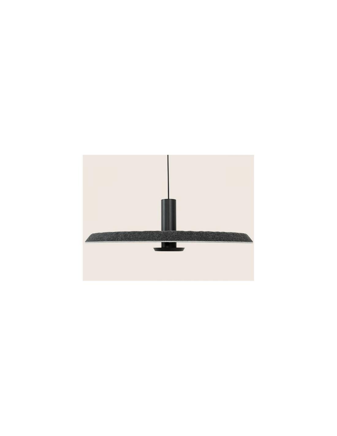 Loftlampe udført i et moderne design af sort og grå akustikpanel med et indre i metal. Lampens skærm kan være med til at dæmpe uønsket støj og måler 45 cm i diameter. Lampen anvender 13W indbygget LED lyskilde.