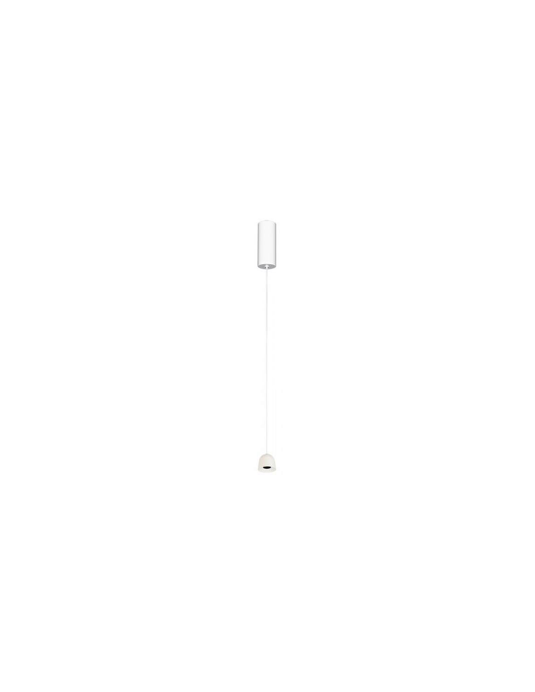 Loftlampe udført i et moderne design af satineret hvidlakeret aluminium. Loftlampen måler 5 cm i diameter og op til 220,6 cm i højden. Lampen anvender 7W indbygget LED lyskilde.