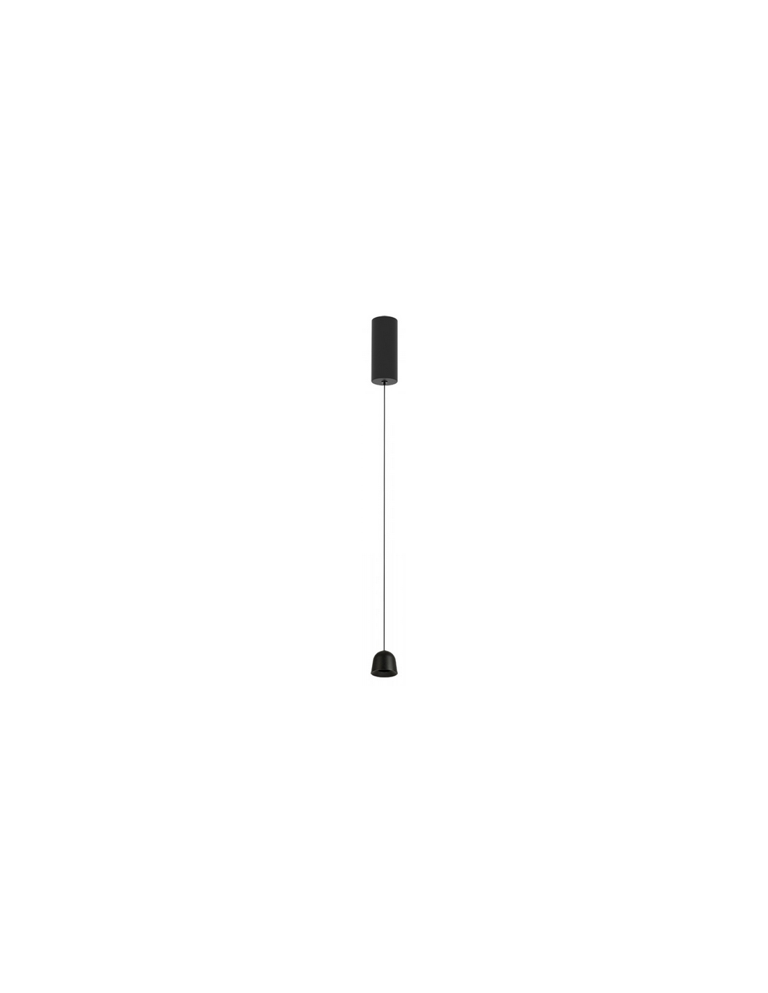 Loftlampe udført i et moderne design af satineret sortlakeret aluminium. Loftlampen måler 5 cm i diameter og op til 220,6 cm i højden. Lampen anvender 7W indbygget LED lyskilde.