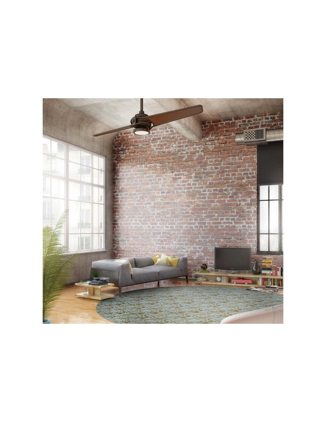 XETY Loftventilator udført i et moderne design, fremstillet i antik bronzelakeret stål og med vinger i brun polycarbonat. Loftventilatorer kan monteres på vandrette og skrå lofter (i kip). Ventilatoren måler 142 cm i diameter og 35 cm i højde/fremspring. Den kommer med 3 hastigheder frem og 1 i retur, og styres via fjernbetjening. Denne ventilator er med indbygget 10W LED lampe. Loftventilatorer er ideel til rum på op til 16 m2. Ventilatoren har et støjniveau på op til 38,8 DB.