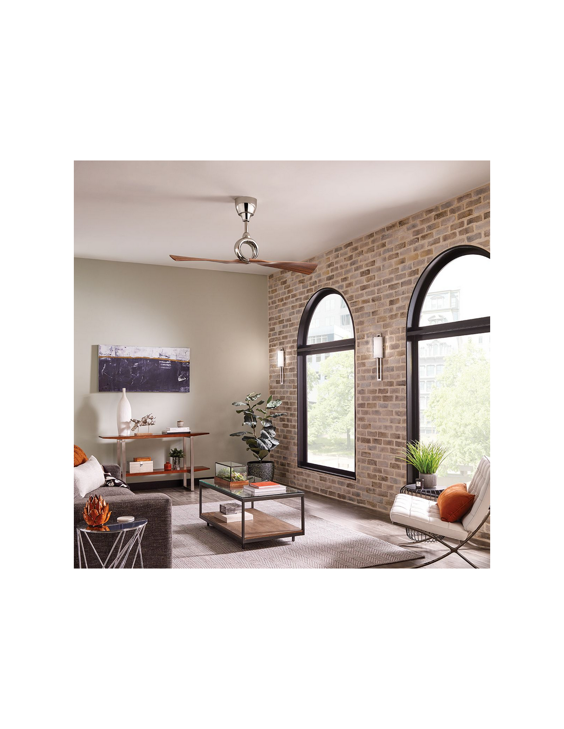 LINK Loftventilator udført i et moderne design, fremstillet i poleret nikkelfarvet stål og med vinger i ABS i brunt trælook. Loftventilatoren kan monteres på vandrette lofter. Ventilatoren måler 137 cm i diameter og 62 cm i højde/fremspring. Den kommer med 6 hastigheder frem og 1 i retur, og styres via fjernbetjening. Loftventilatorer er ideel til rum på op til 18 m2. Ventilatoren har et støjniveau på op til 42,2 DB.