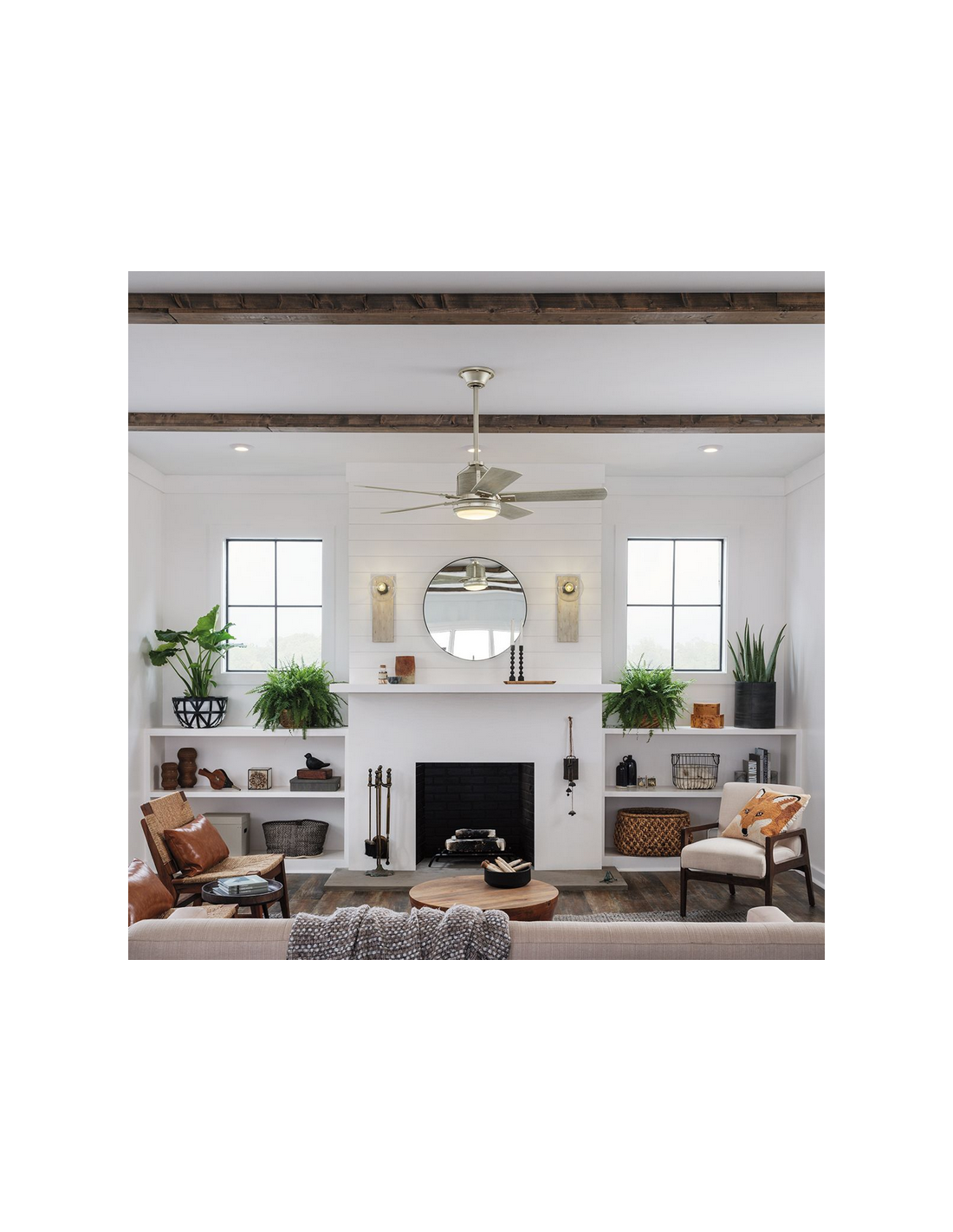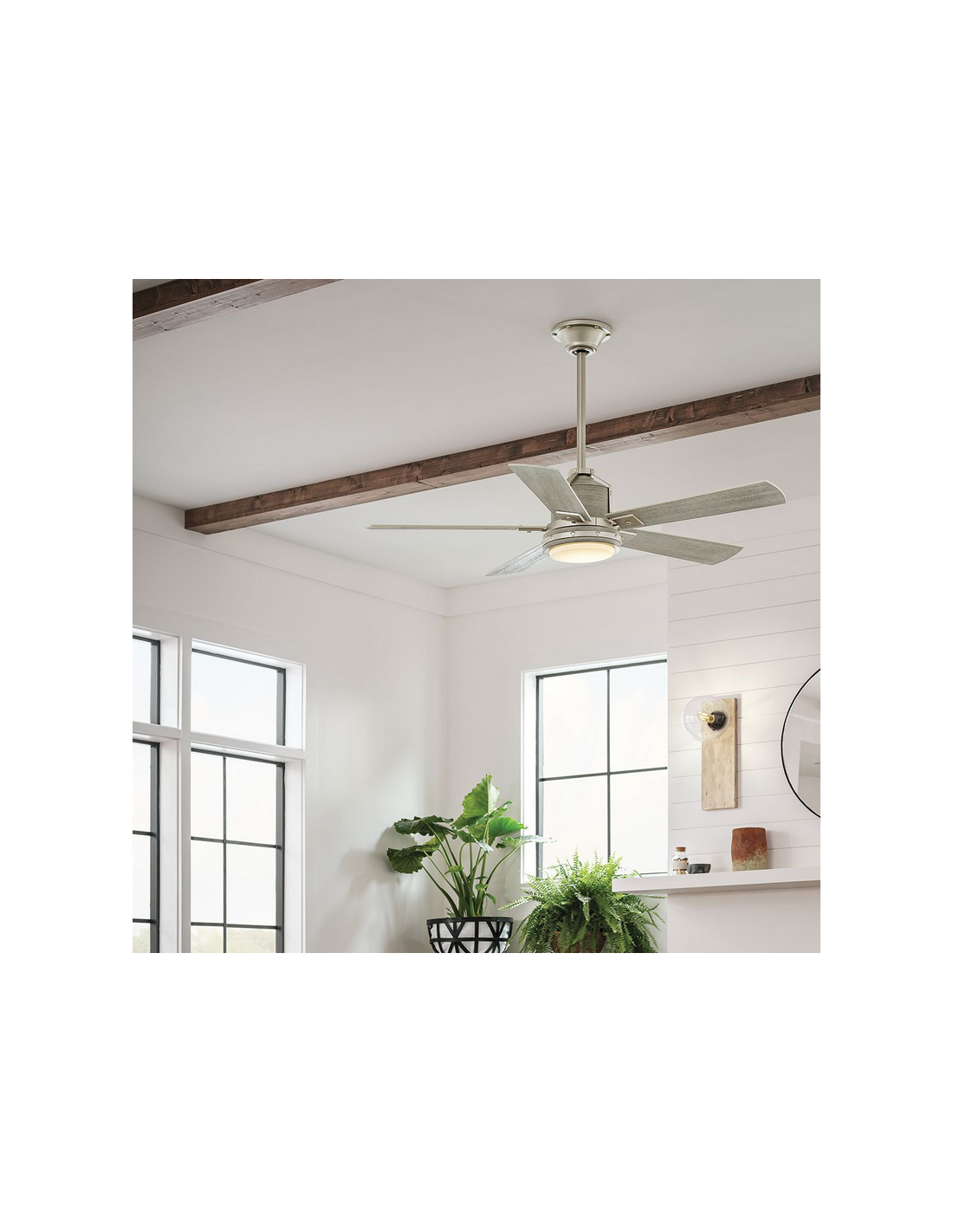 COLERNE Loftventilator i stål og træ Ø132 cm - Børstet nikkel
