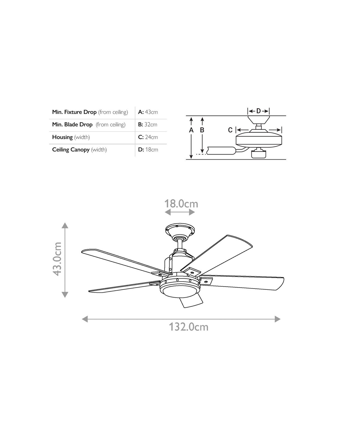 • Diameter: 132 cm