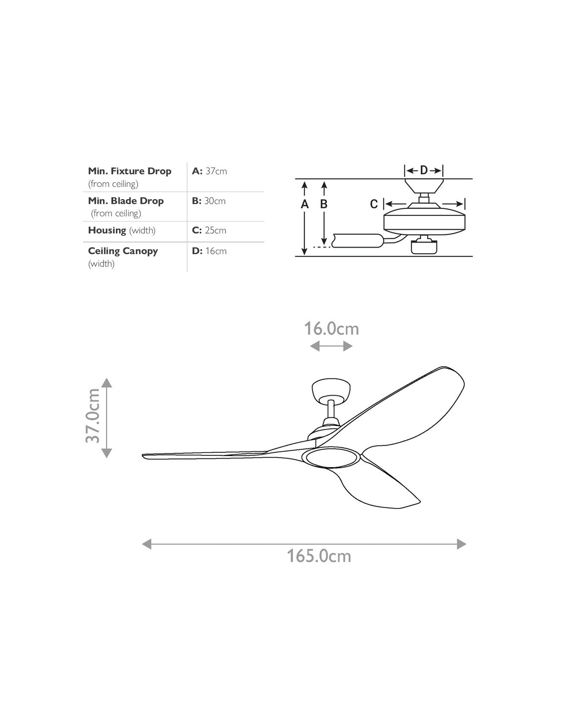IMARI Loftventilator udført i et moderne design, fremstillet i satineret sortlakeret stål og bleget naturfarvet ABS. Loftventilatoren kan monteres på vandrette og skrå lofter (i kip). Ventilatoren måler 165 cm i diameter og 30 - 37 cm i højde/fremspring. Den kommer med 6 hastigheder frem og 1 i retur, og styres via fjernbetjening. Denne ventilator er med indbygget 16W LED lampe. Loftventilatorer er ideel til rum på op til 28 m2. Ventilatoren har et støjniveau på op til 47,3 DB.