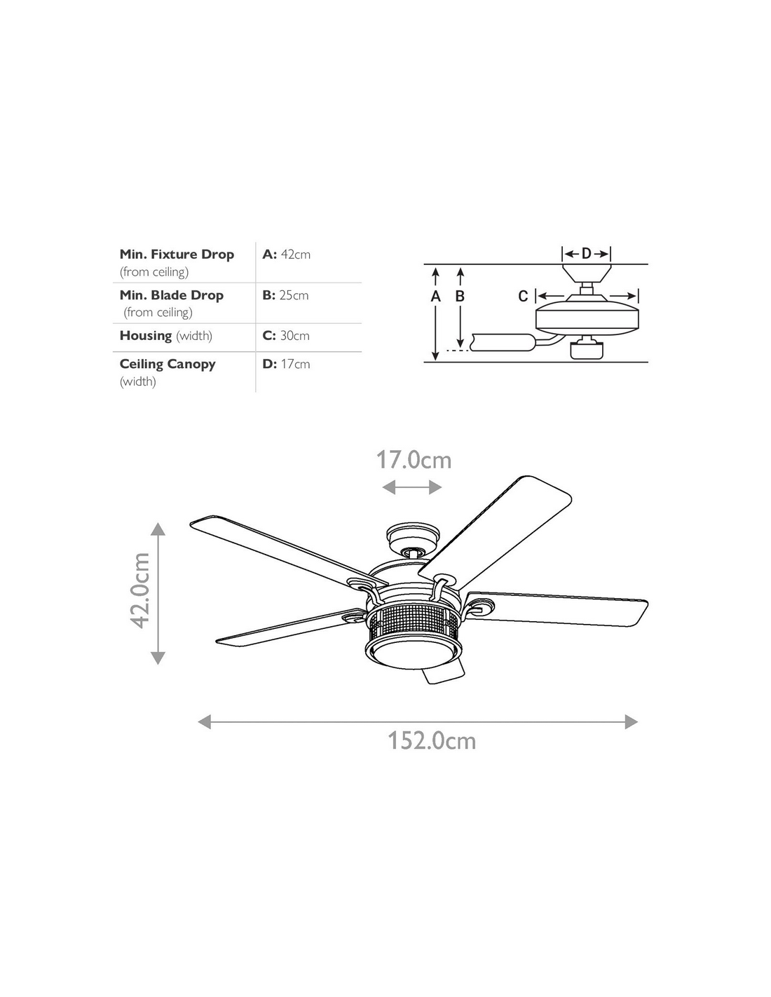 AHRENDALE Loftventilator udført i et design, fremstillet i antik bronzelakeret stål og ABS i antik jerngrå. Loftventilatoren kan monteres på vandrette og skrå lofter (i kip). Ventilatoren måler 152 cm i diameter og 25 - 42 cm i højde/fremspring. Den kommer med 3 hastigheder frem og 1 i retur, og styres via fjernbetjening. Denne ventilator er med indbygget LED lampe på 10W. Loftventilatoren er ideel til rum på op til 20 m2. Ventilatoren har et støjniveau på op til 36,2 DB. Ventilatoren er med beskyttelsesgrad IP44 og tåler dermed anvendelse i vådrum eller udendørs.