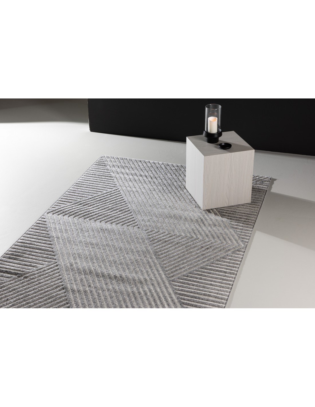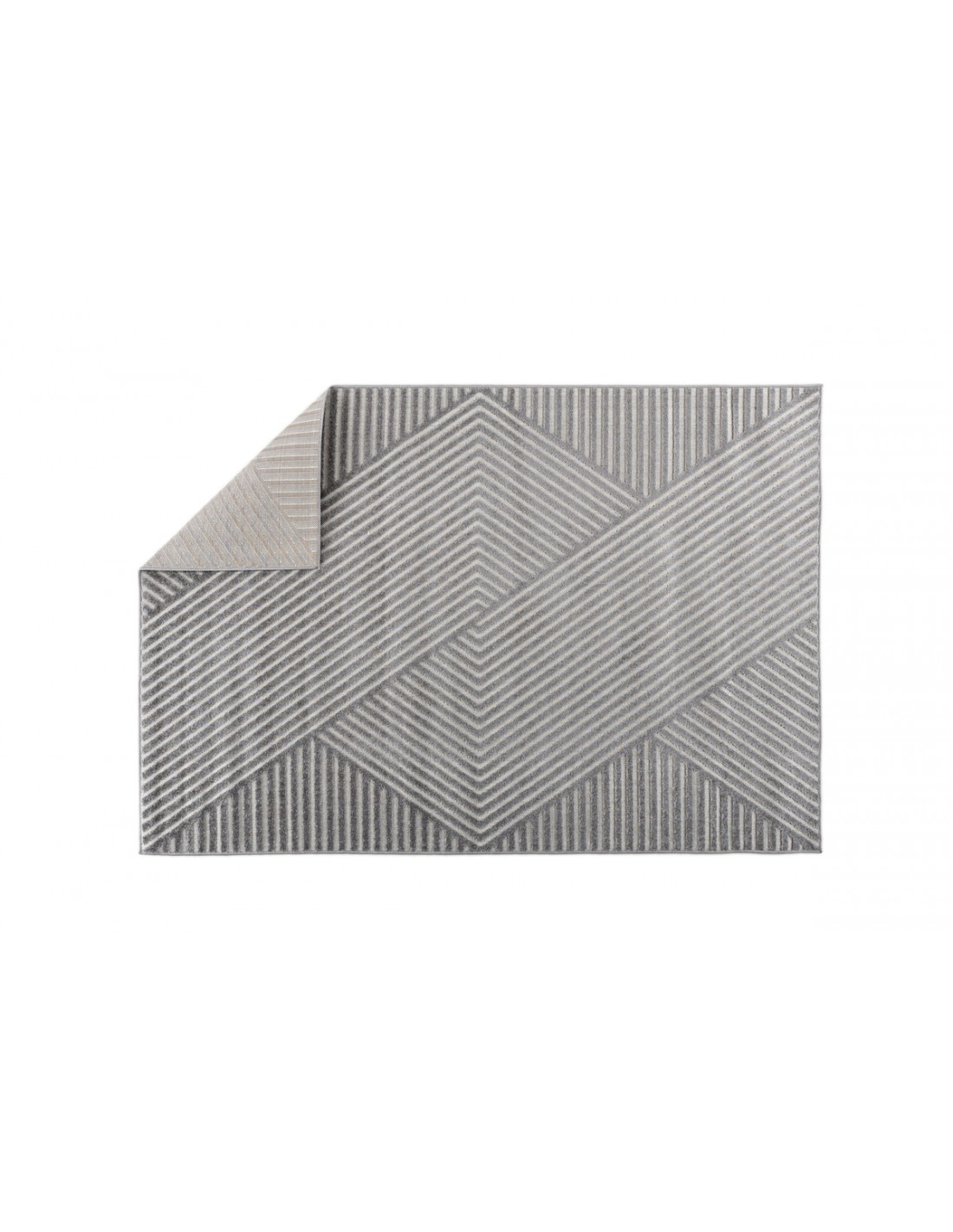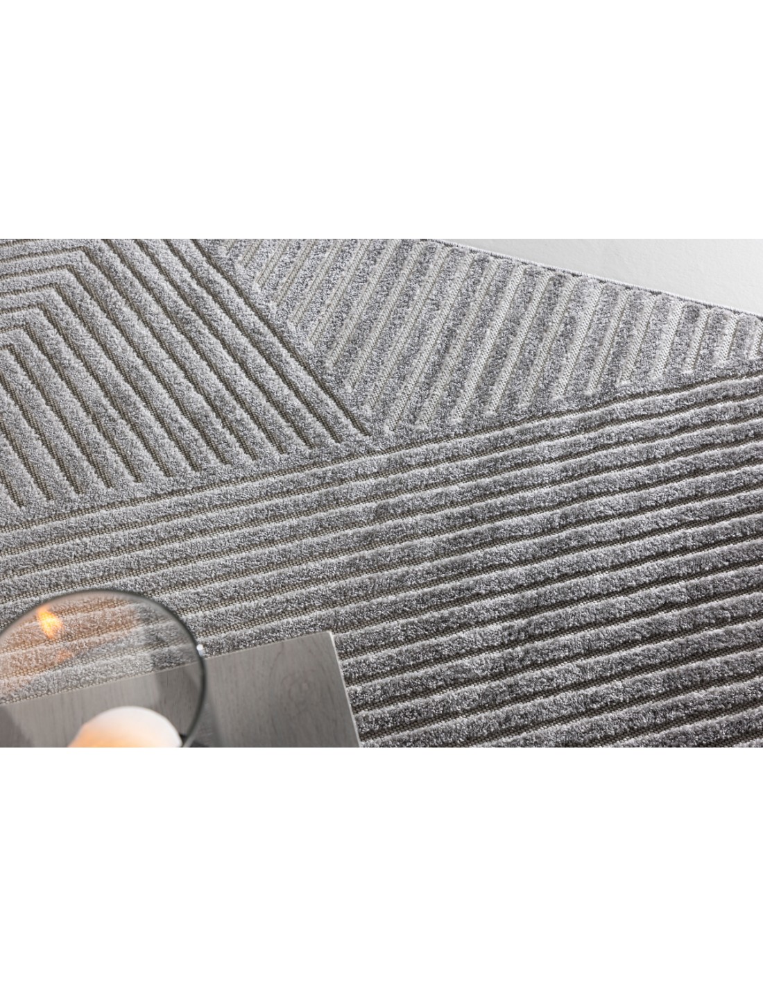 ARON Tæppe udført i et design af grå polypropylene. Tæppet måler 1 - 1,5 cm i højden og 340 x 240 cm i bredde og dybde.