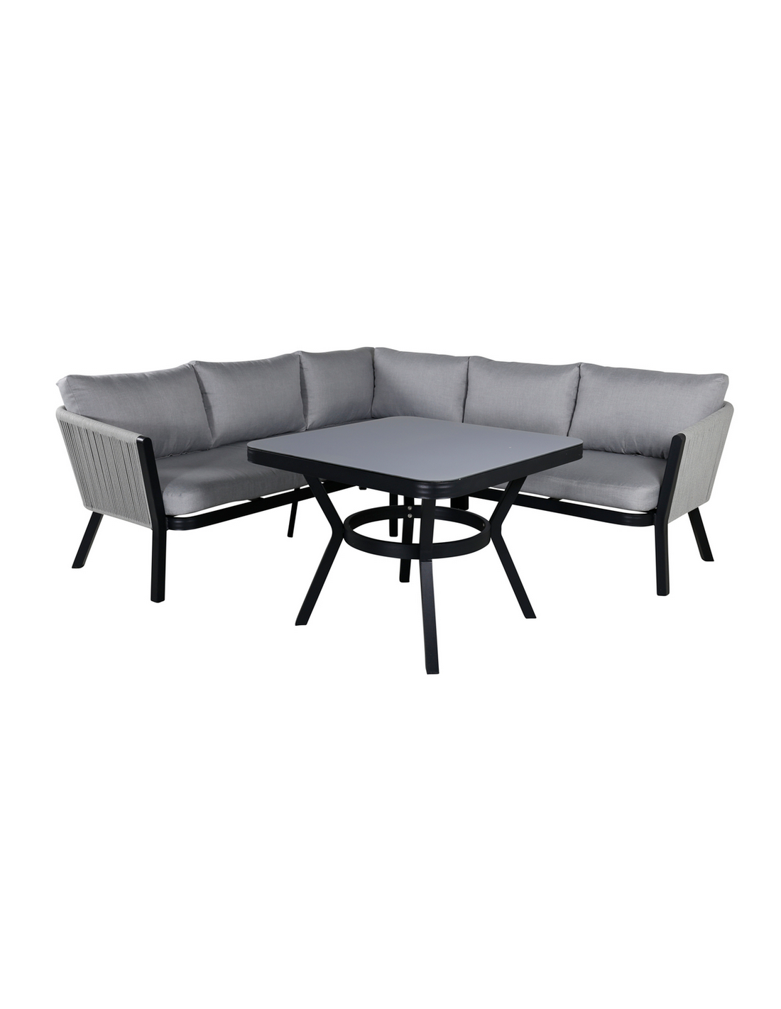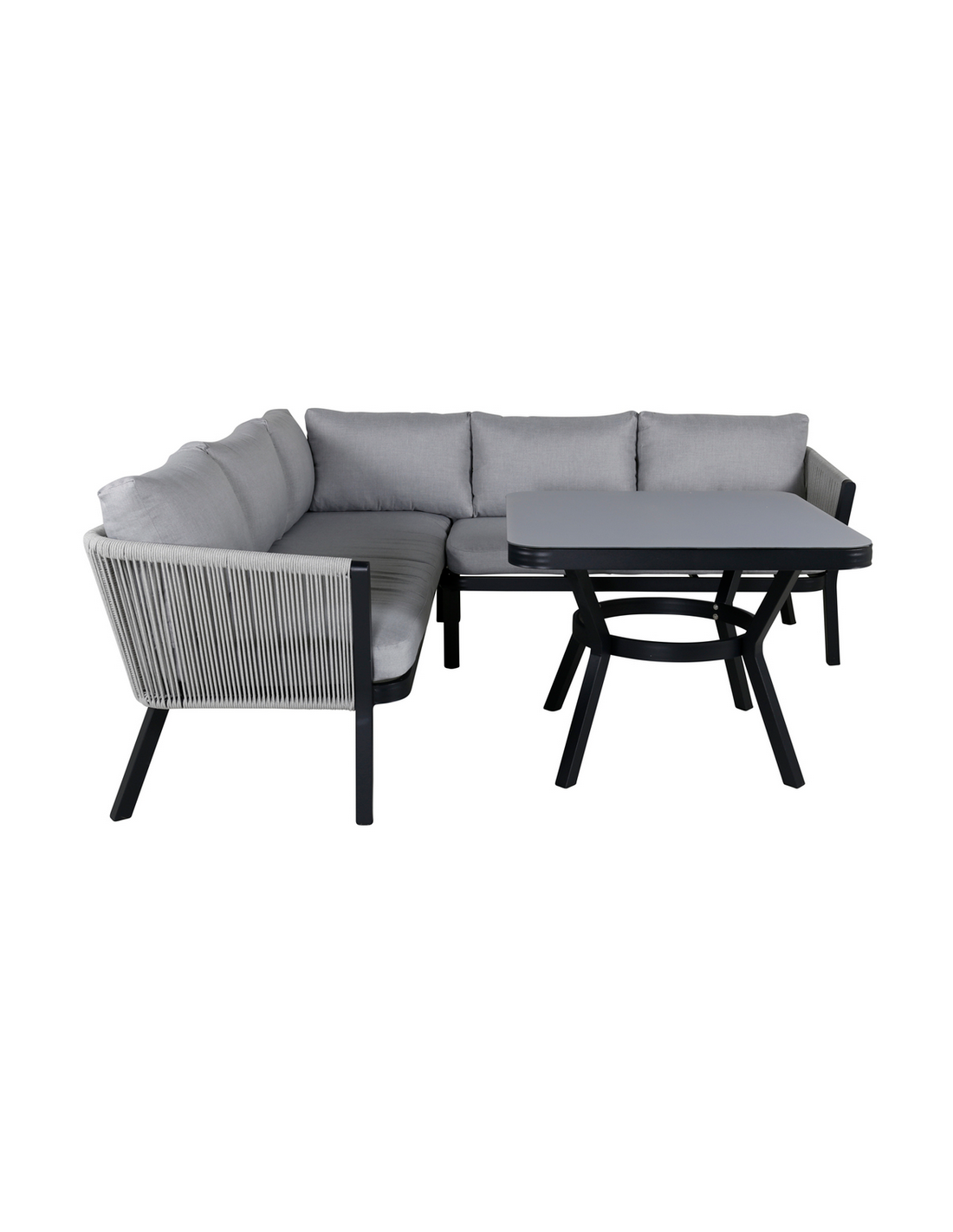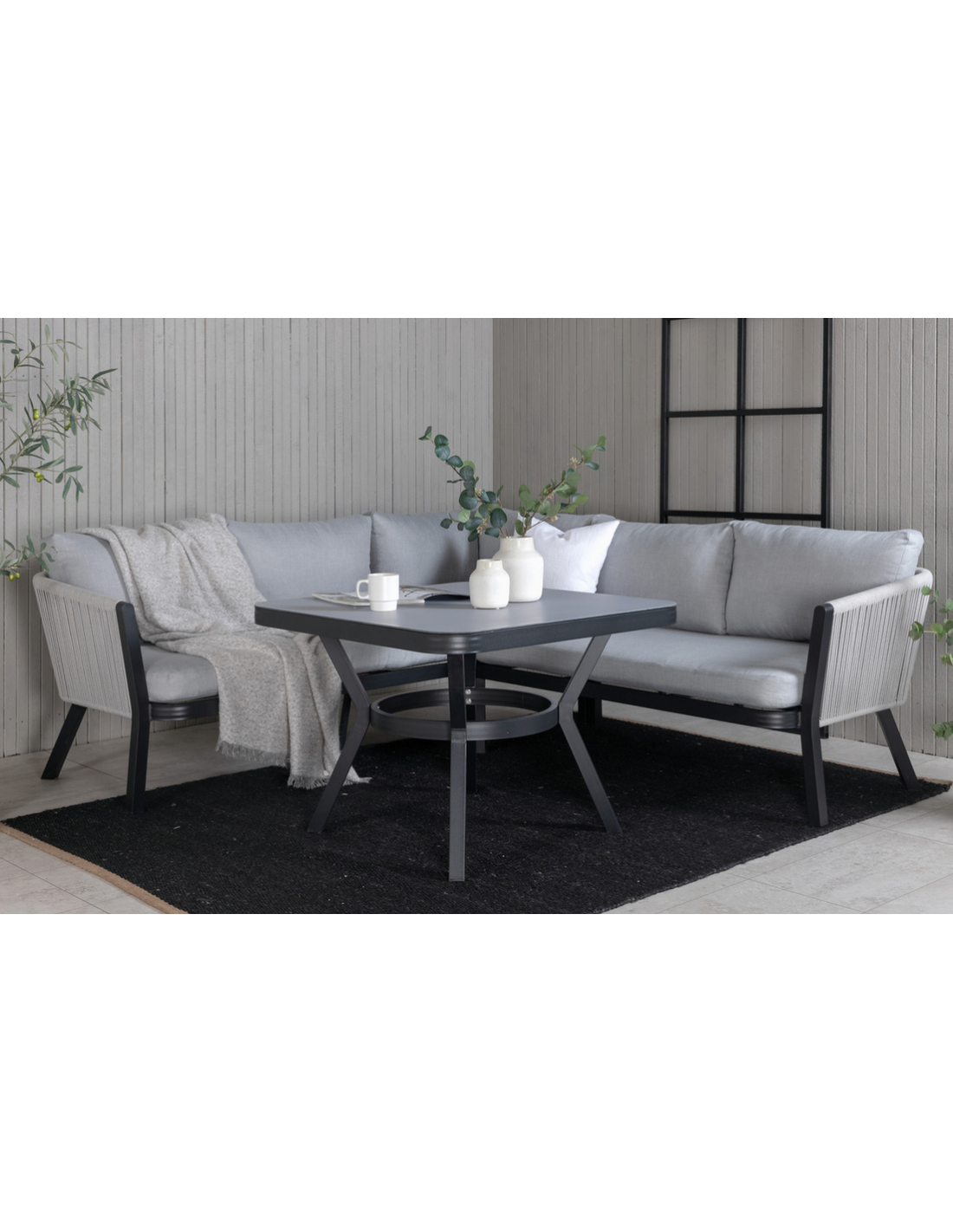 RYA Loungesofa med bord i aluminium og polyester 206 x 220 cm - Sort/Grå