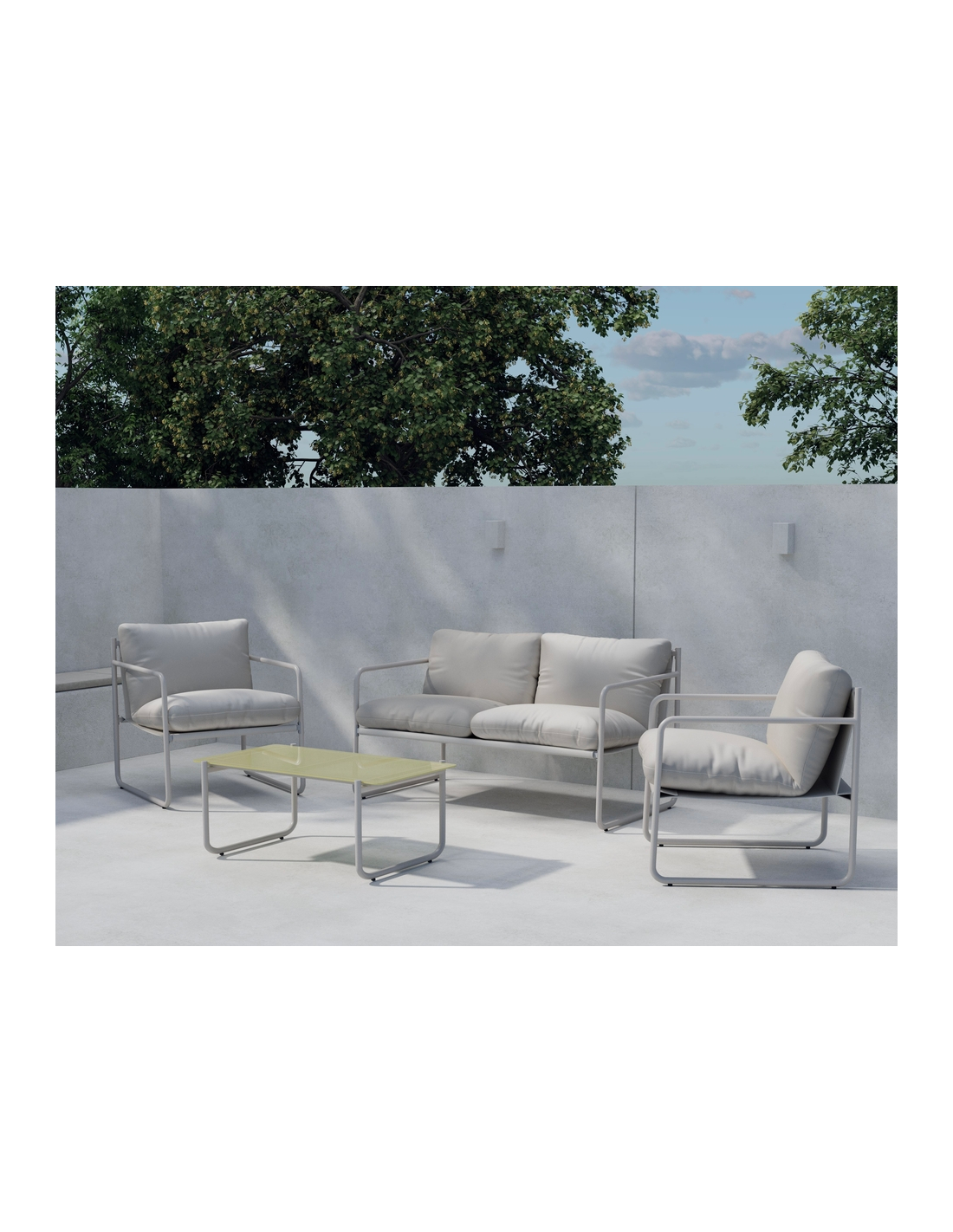 THASSOS Loungesæt i stål, glas og polyester - Grå