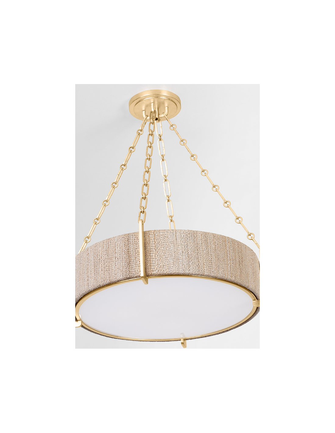 QUEBEC Lysekrone i stål, fiberreb og glas Ø77,8 cm 6 x E14 - Antik bladguld/Natur/Hvid