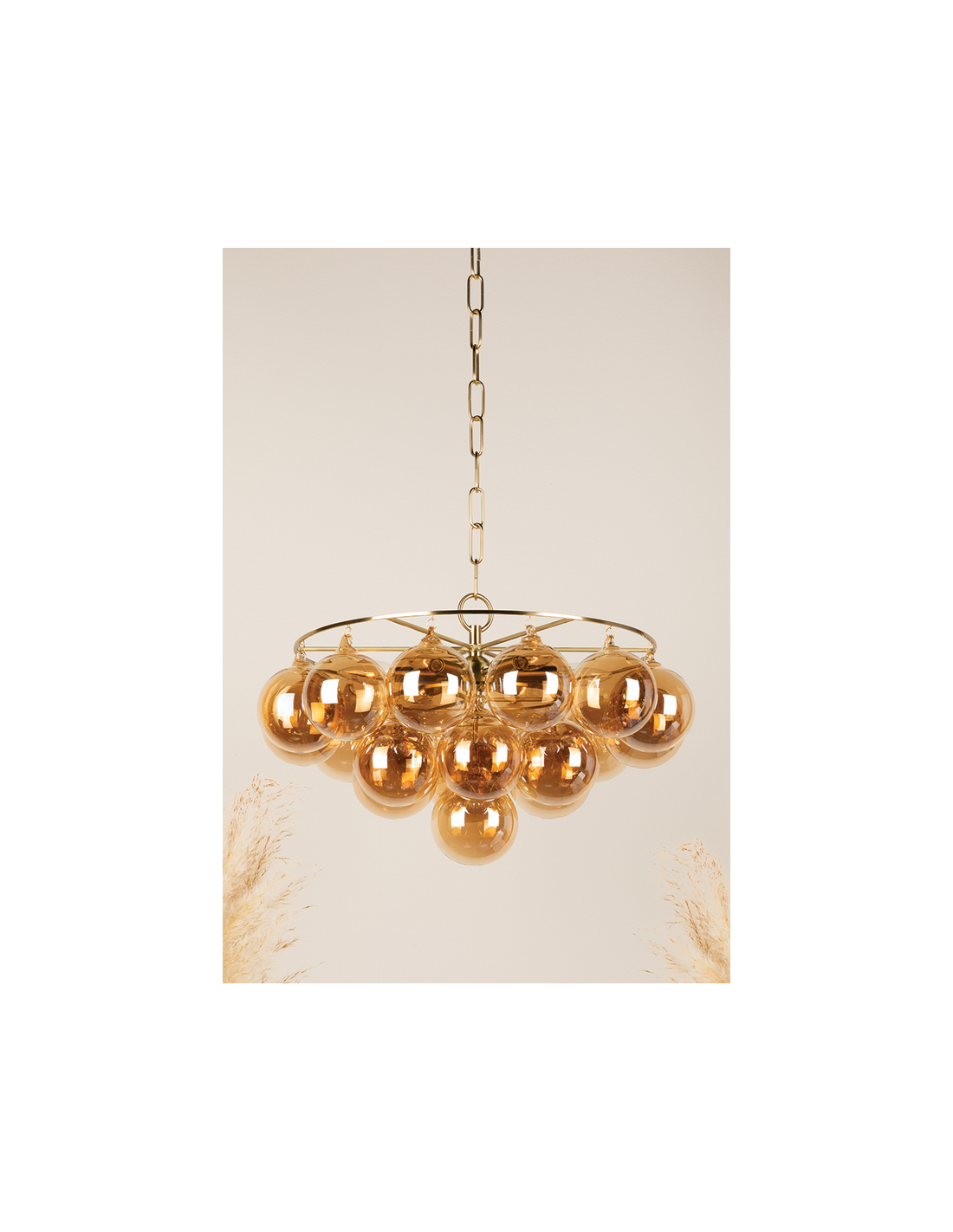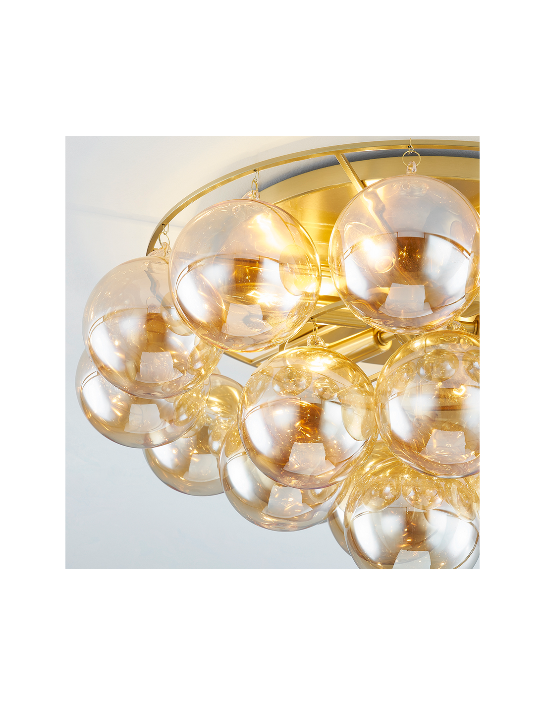 MIMI Lysekrone i stål og glas Ø80 cm 9 x E14 - Antik messing/Champagne