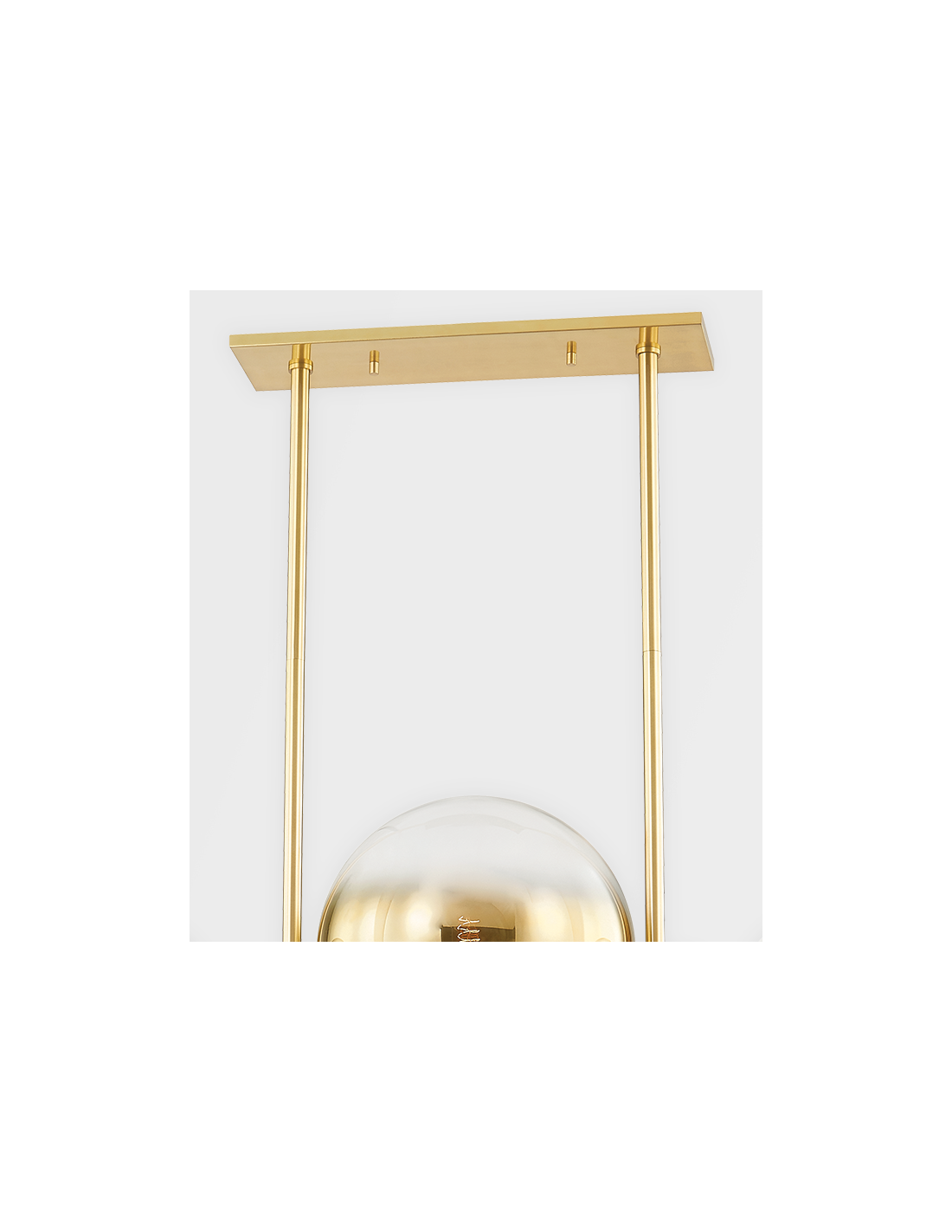 KYOTO Lysekrone udført i et moderne design fremstillet i vintage poleret messinglakeret stål og med skærme i brændt messingfarvet glas. Lysekronen måler 85,8 - 162 cm i højden og 69,22 x 143,6 cm i bredde og dybde og anvender 12 x E27 lyskilder (Ekskl.).