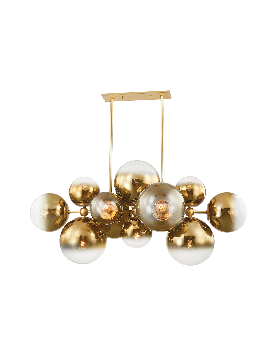KYOTO Lysekrone i stål og glas 69,22 x 143,6 cm 12 x E27 - Vintage poleret messing/Brændt messing