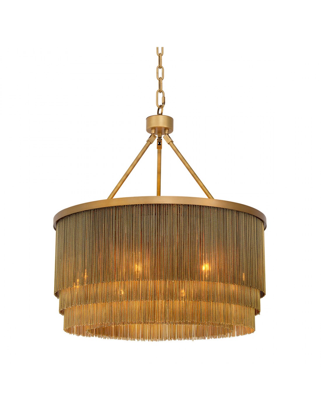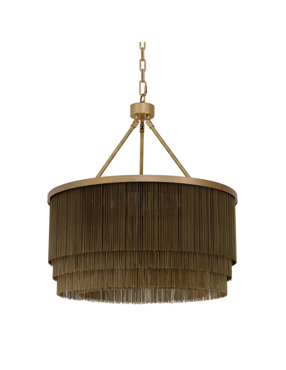 Eichholtz Tissot lysekrone udført i et moderne design fremstillet i antik messinglakeret stål med skærm i messinglakeret metaltråde. Lysekronen måler 60 + 150 cm i højden og 68 cm i diameter og anvender 8 x E14 lyskilder (Ekskl.).