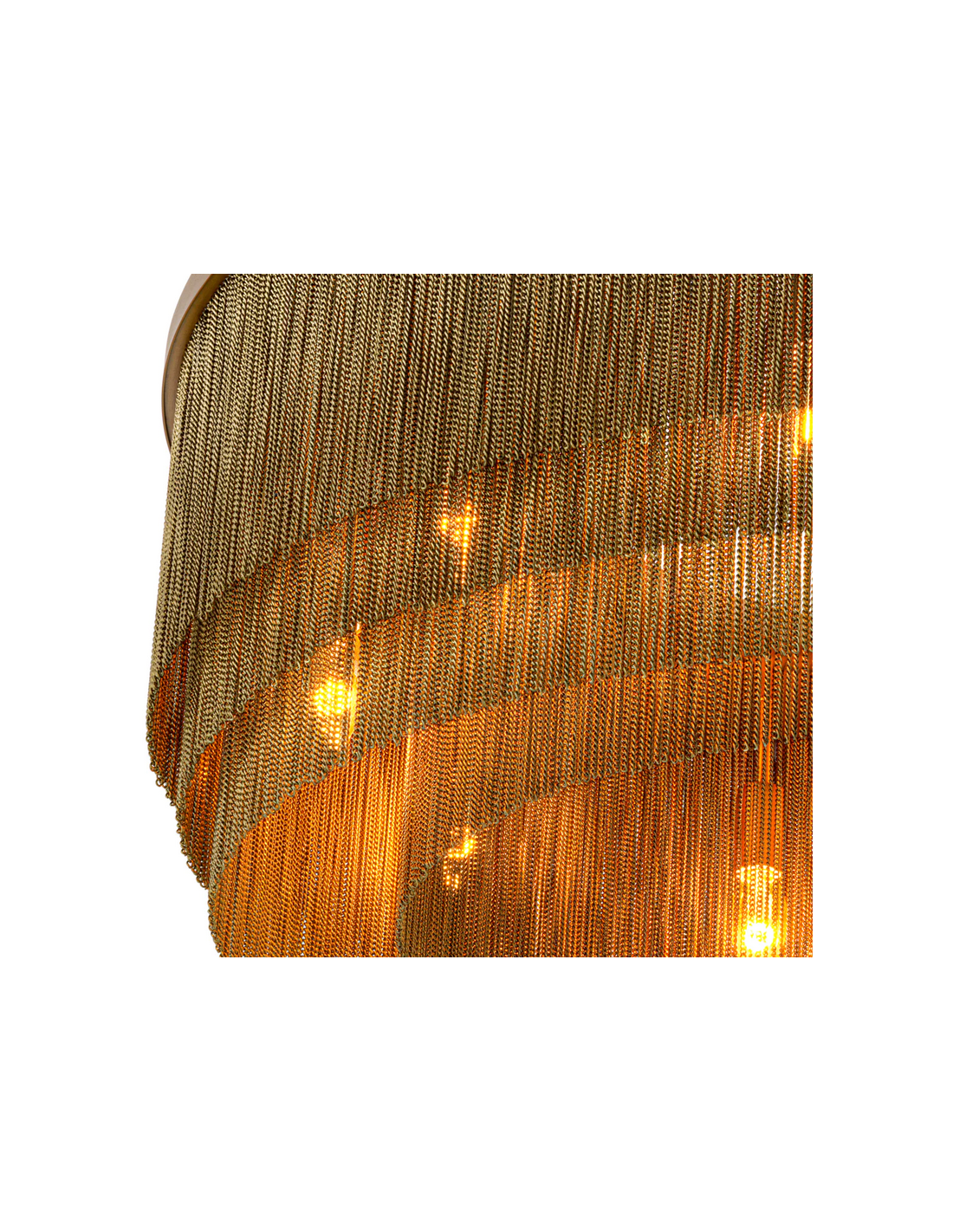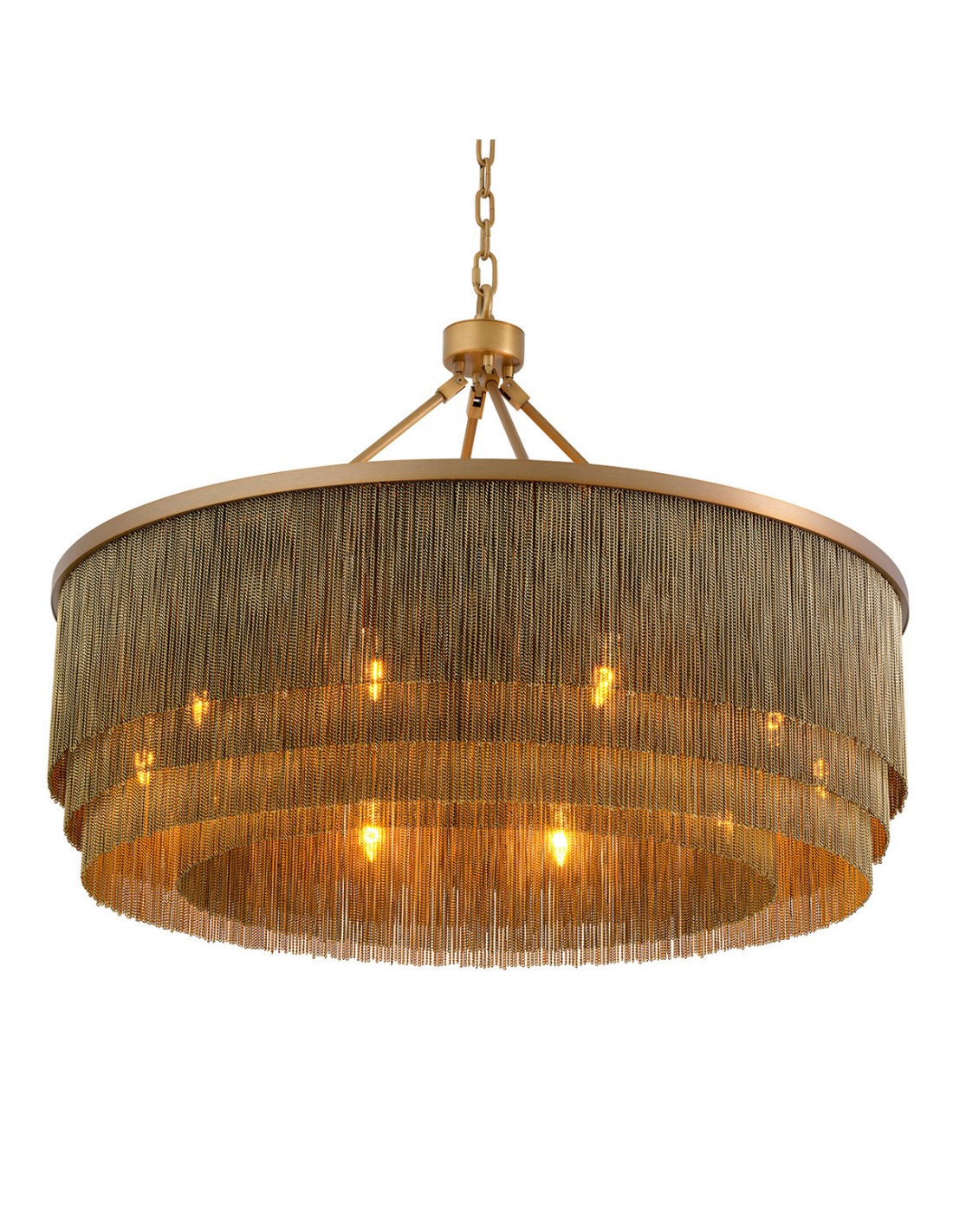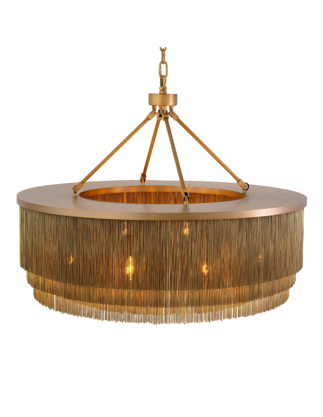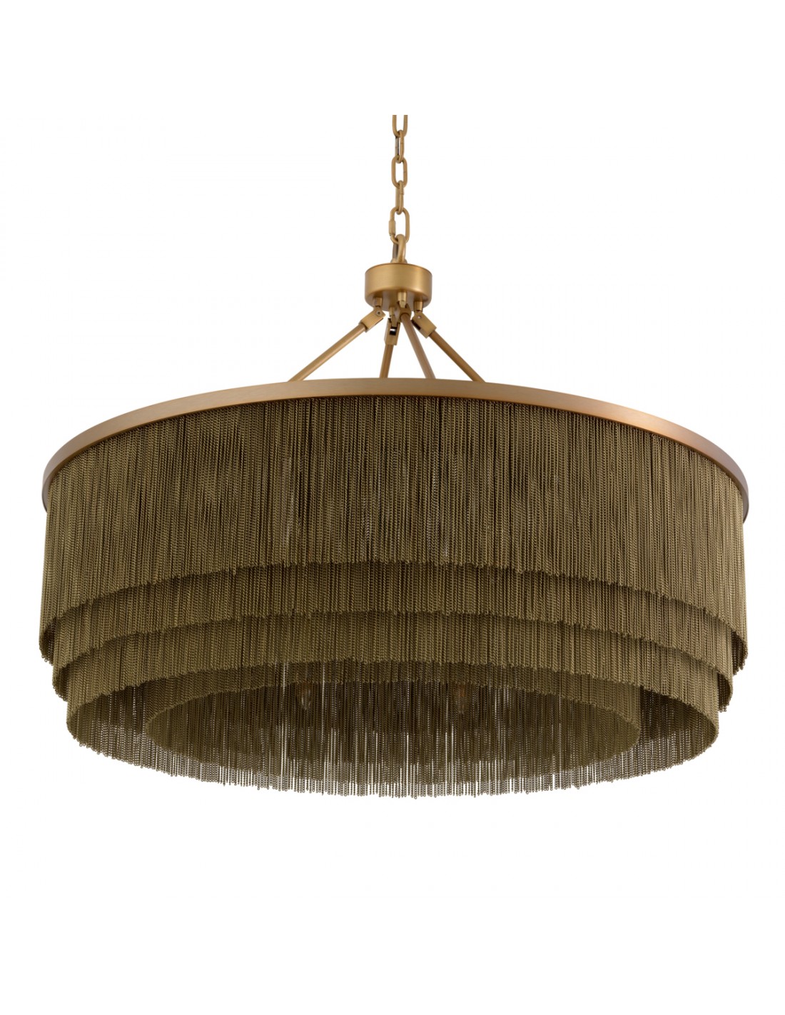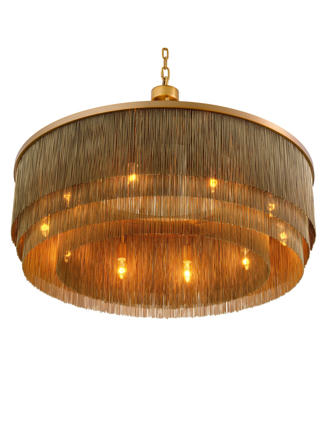 Eichholtz Tissot lysekrone udført i et moderne design fremstillet i antik messinglakeret stål med skærm i messinglakeret metaltråde. Lysekronen måler 61 + 150 cm i højden og 90 cm i diameter og anvender 10 x E14 lyskilder (Ekskl.).