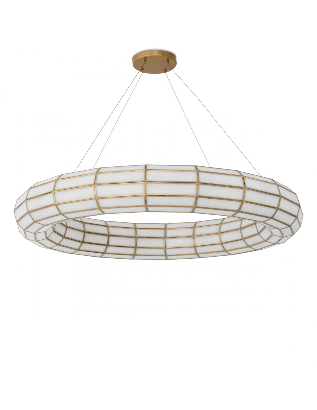 Eichholtz Ronco lysekrone i stål og glas Ø120 cm 10 x E14 - Antik messing/Vintage hvid