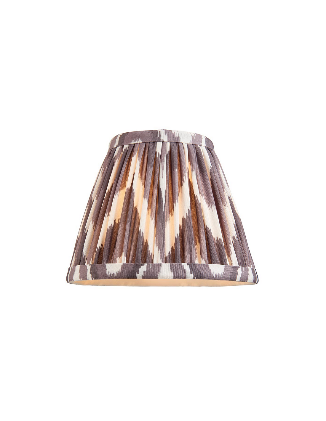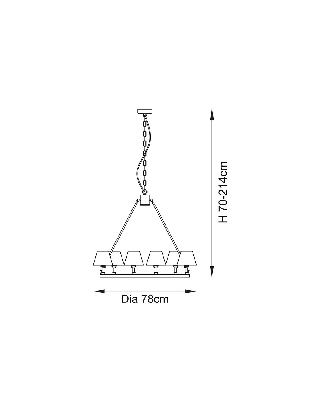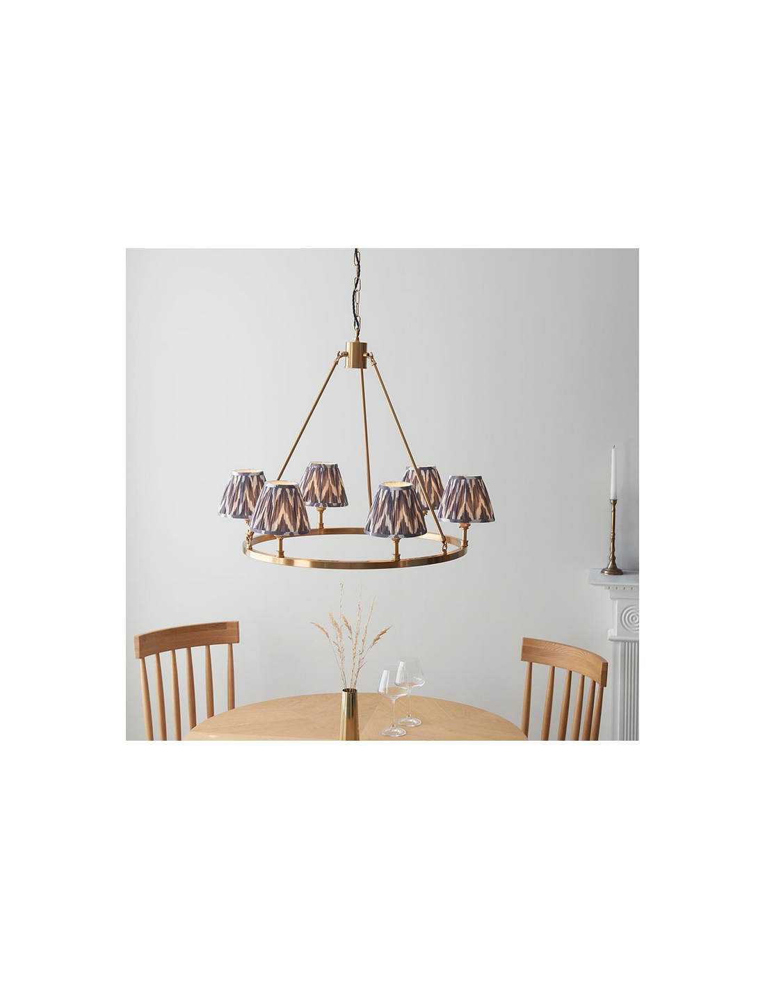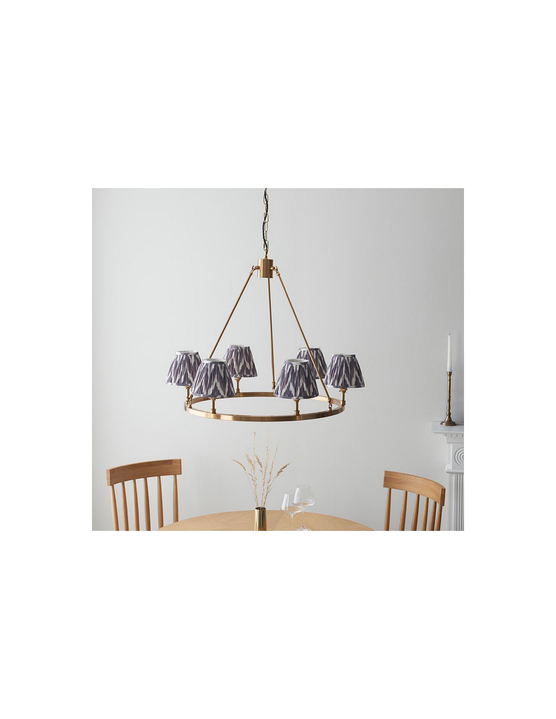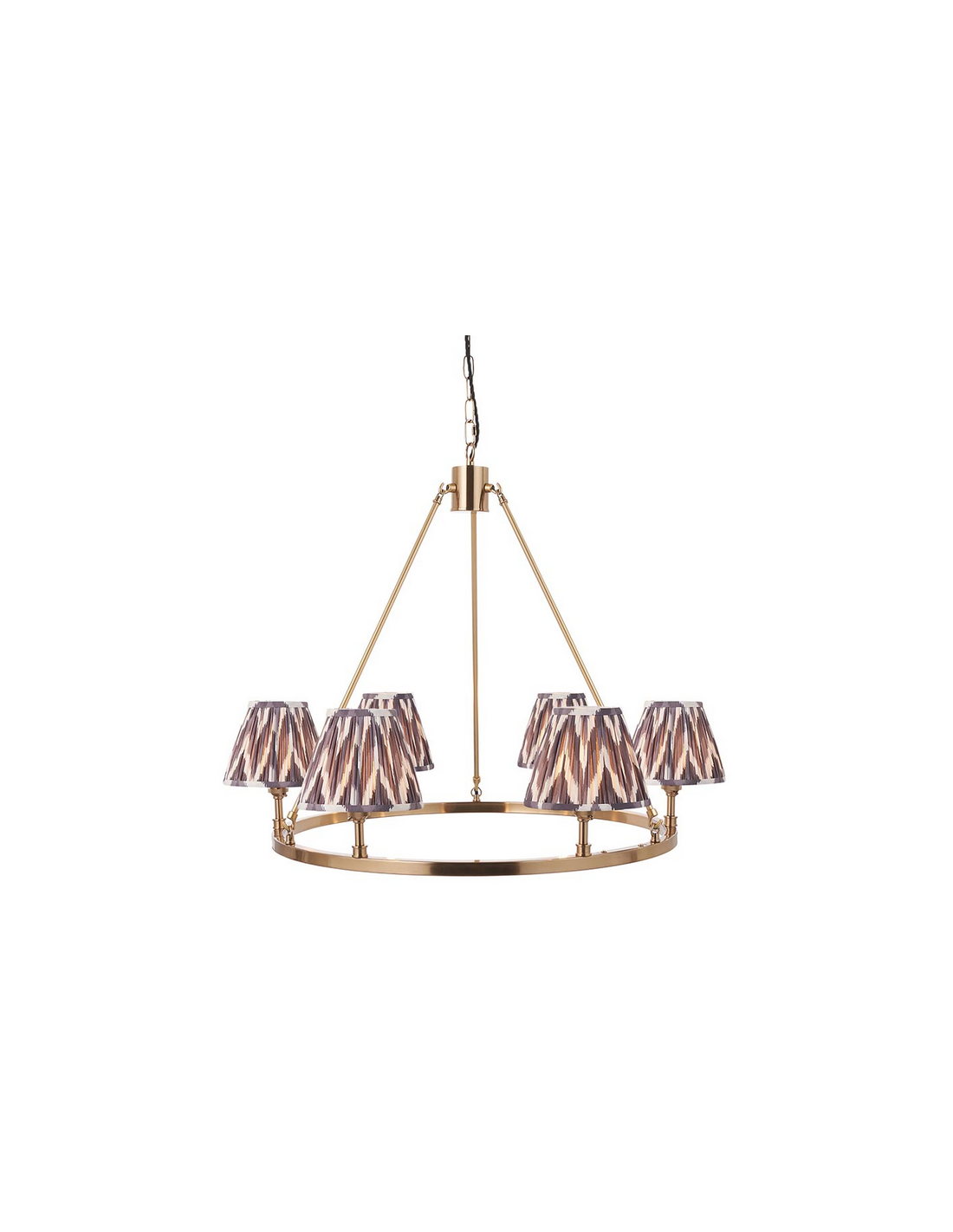 CHESTER Lysekrone udført i et luksuriøst design af antik messinglakeret stål og med skærme i grå faux silke. Lysekronen måler 78 cm i diameter og anvender 6 x B22 lyskilder (ekskl.).