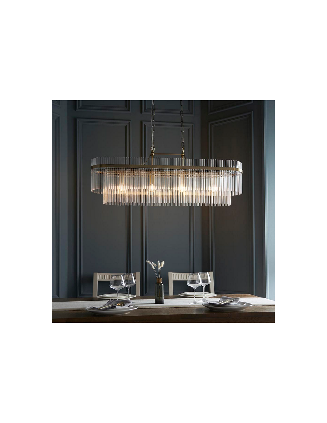 MARIETTA Lysekrone i stål og glas 100 x 20 cm 4 x E14 - Antik messing/Klar
