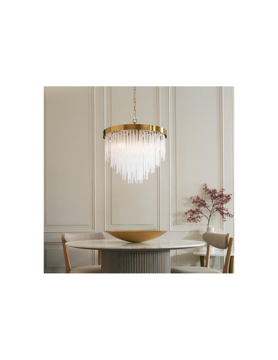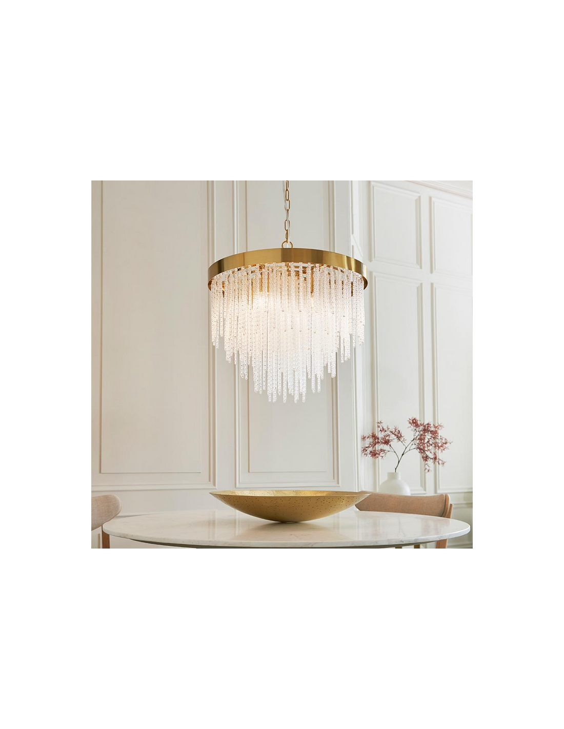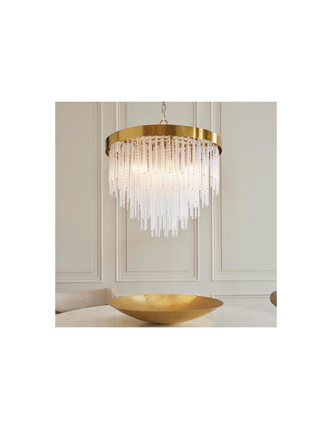 ANISTORIA Lysekrone i stål og glas Ø50 cm 5 x E14 - Børstet messing/Klar tekstur