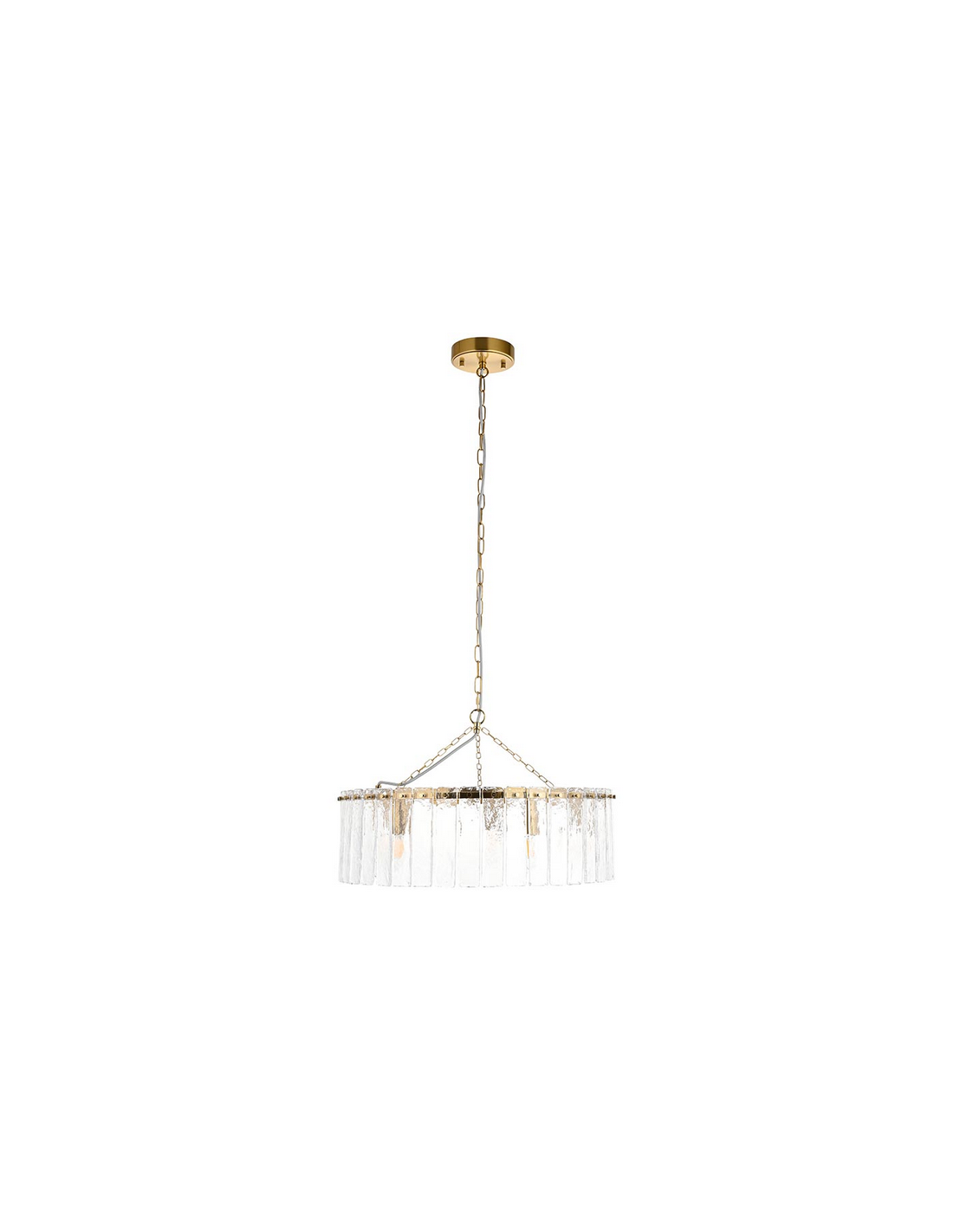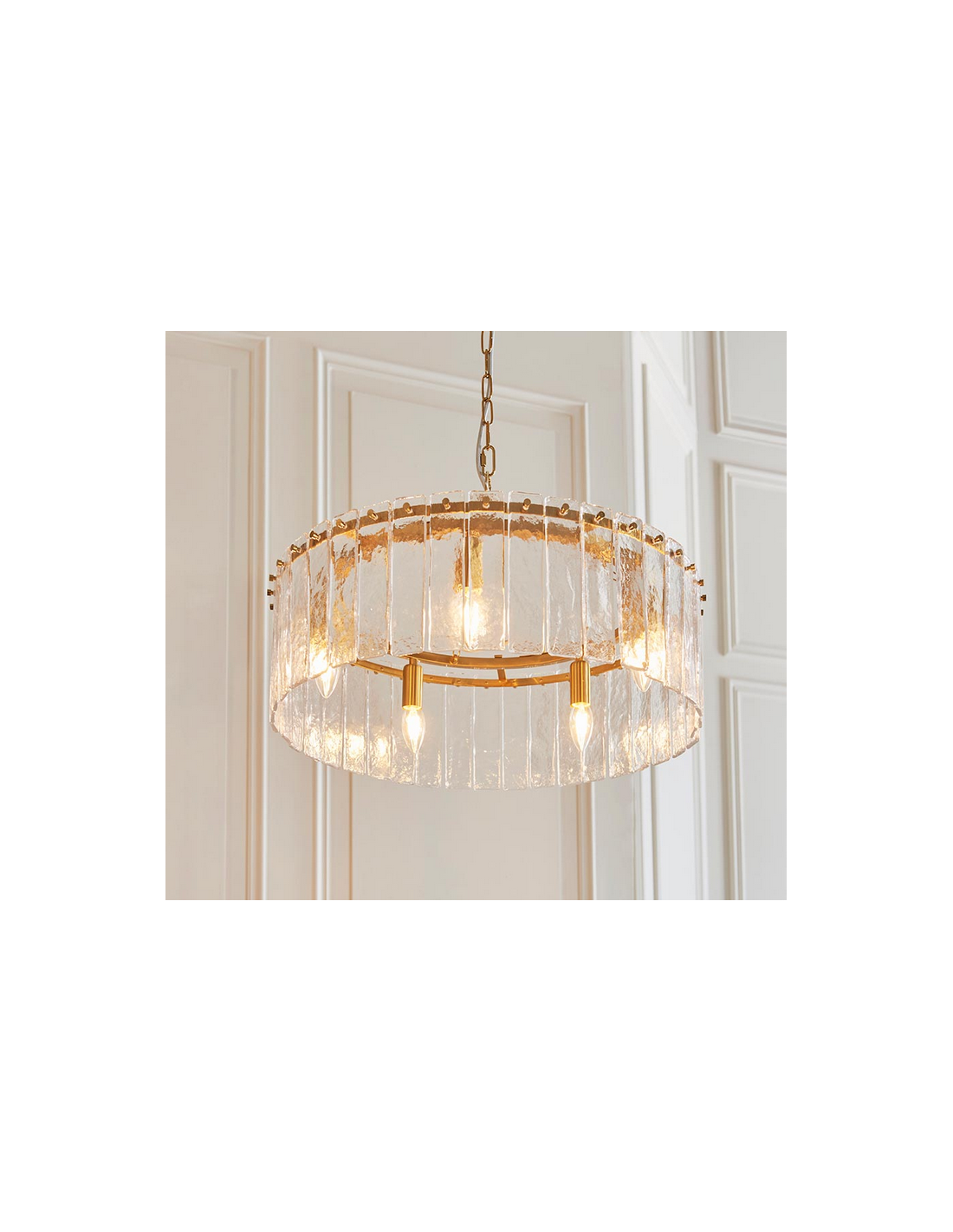KARINE Lysekrone i stål og glas Ø55 cm 5 x E14 - Børstet messing/Klar tekstur