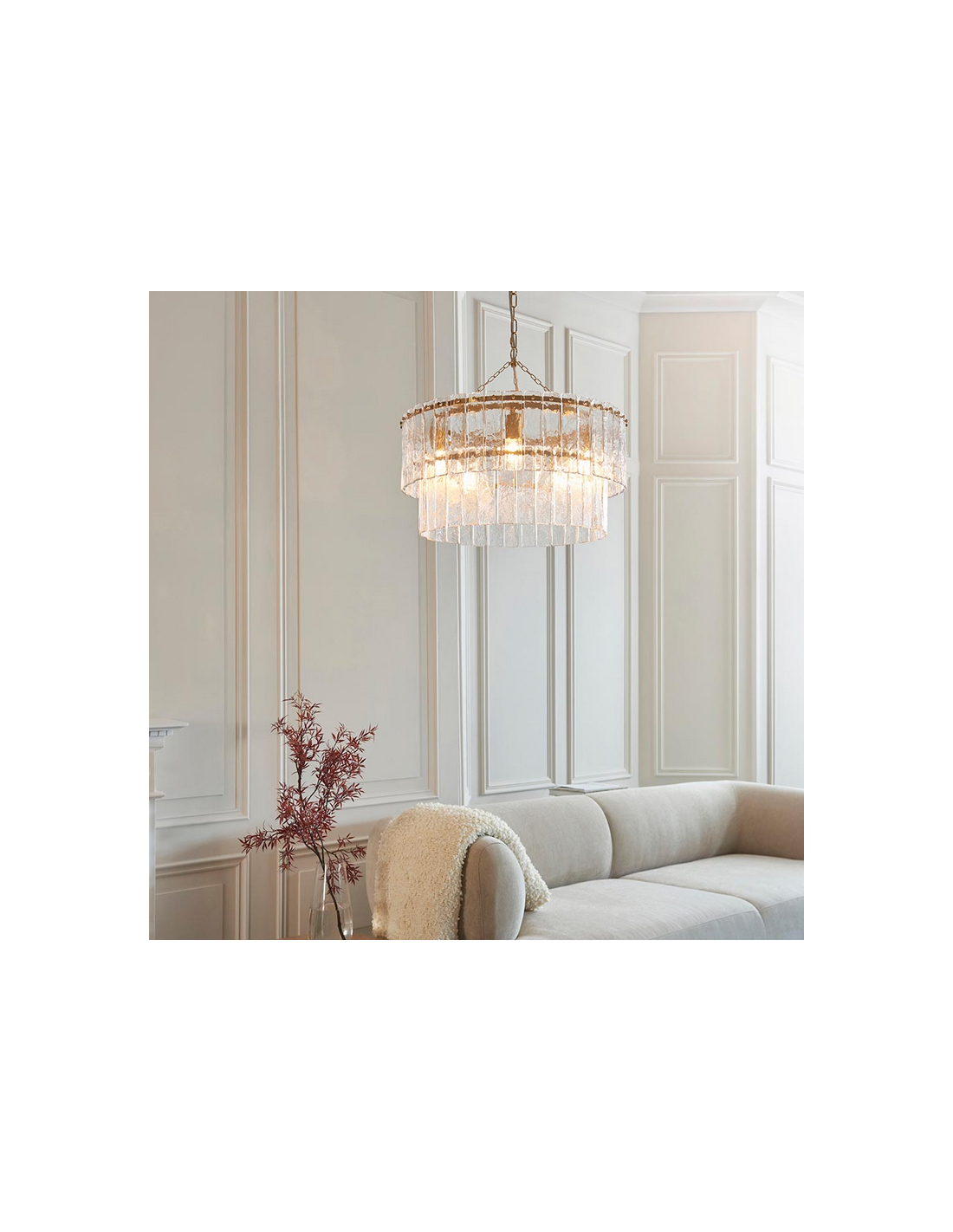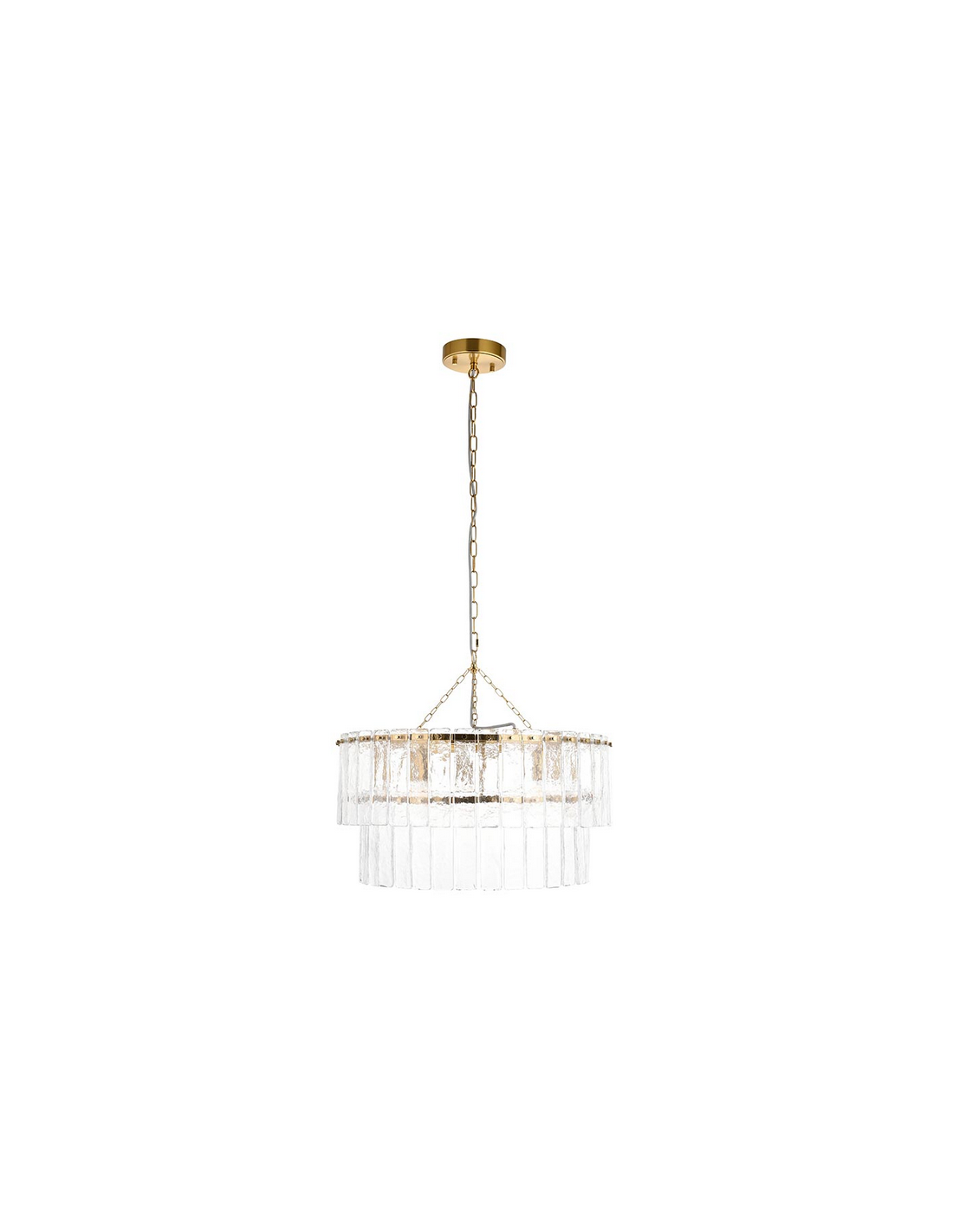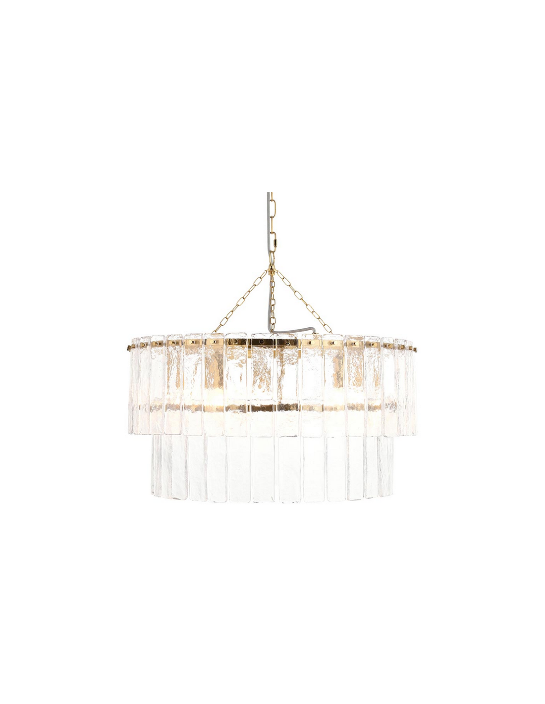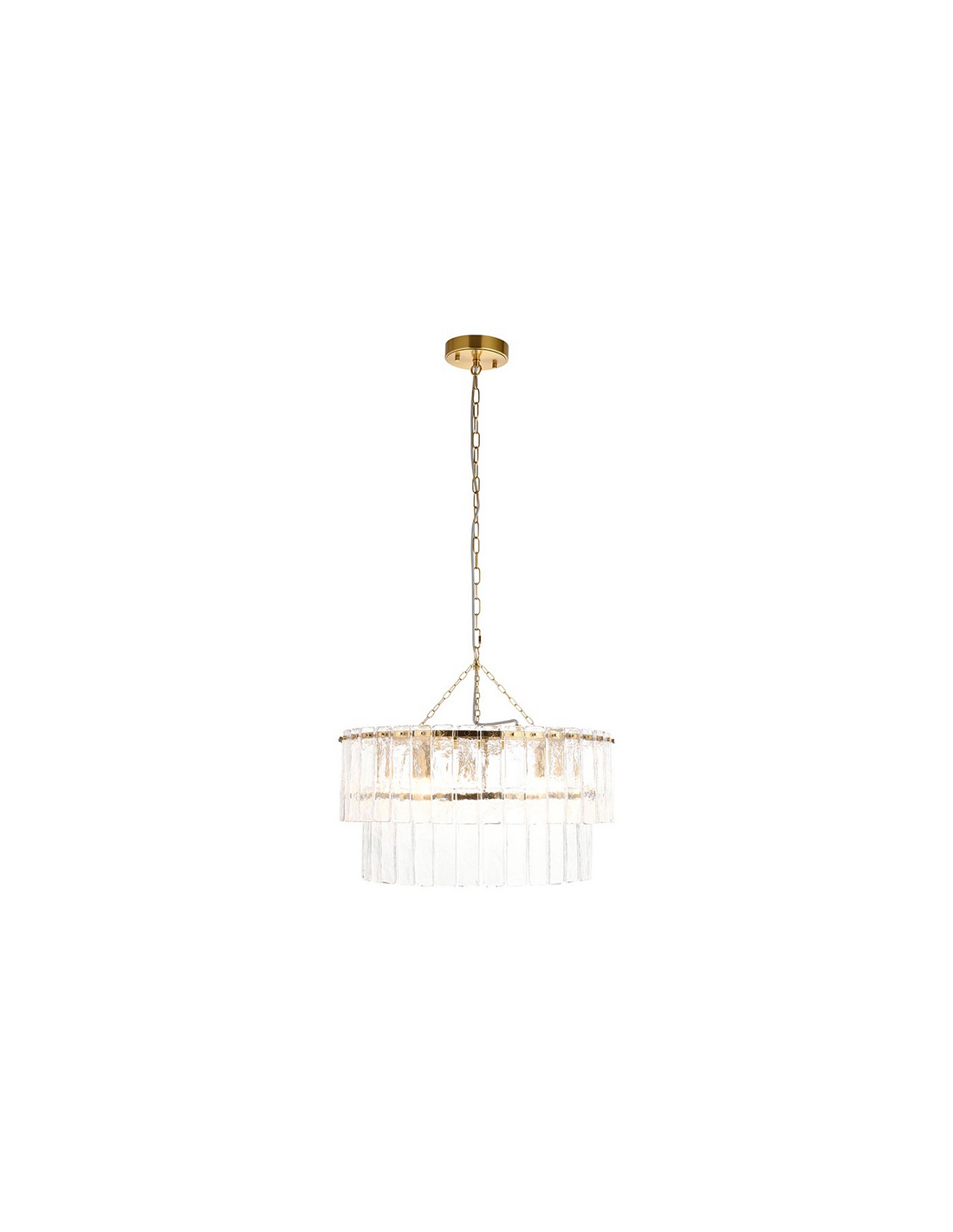 KARINE Lysekrone i stål og glas Ø55 cm 5 x E14 - Børstet messing/Klar tekstur