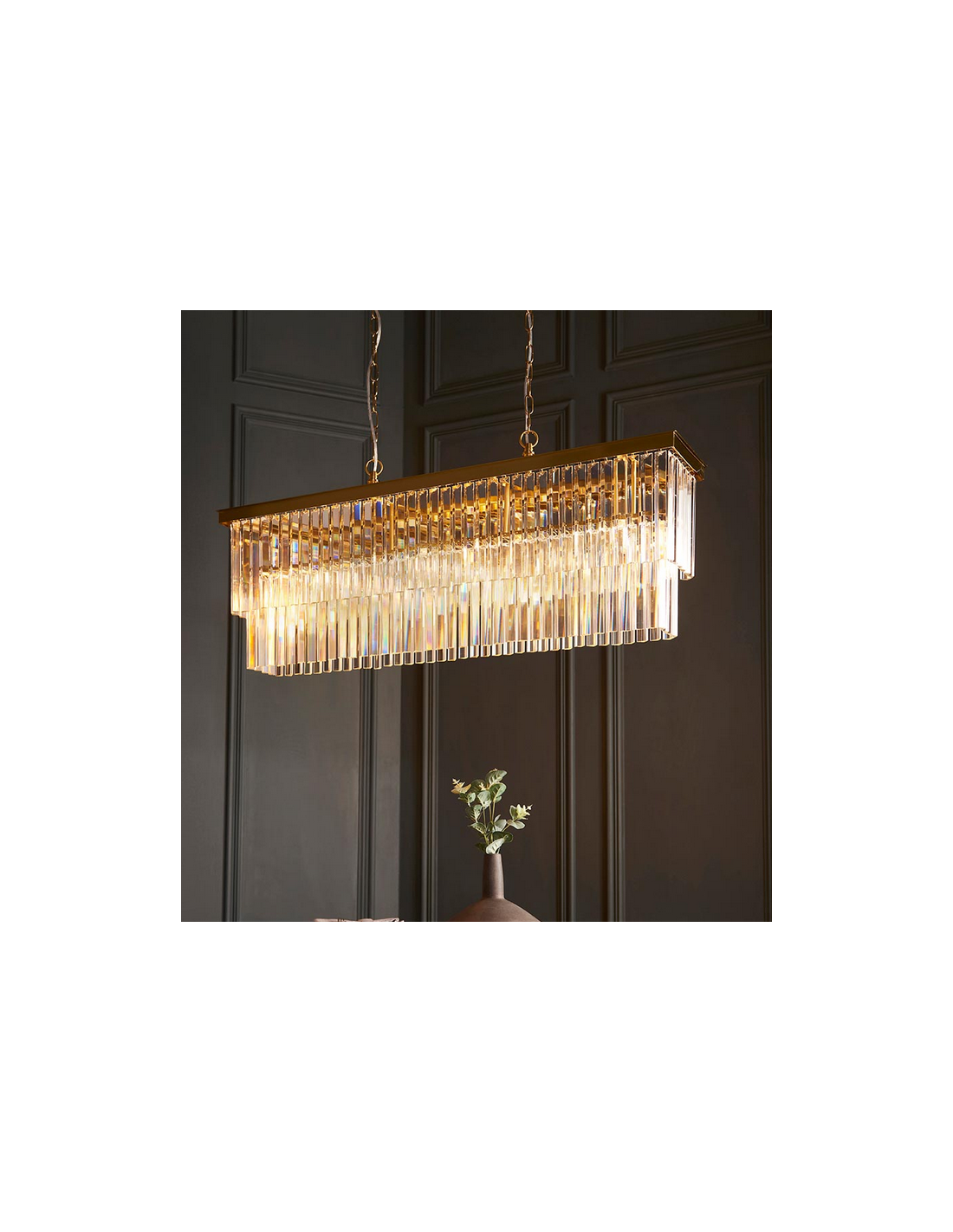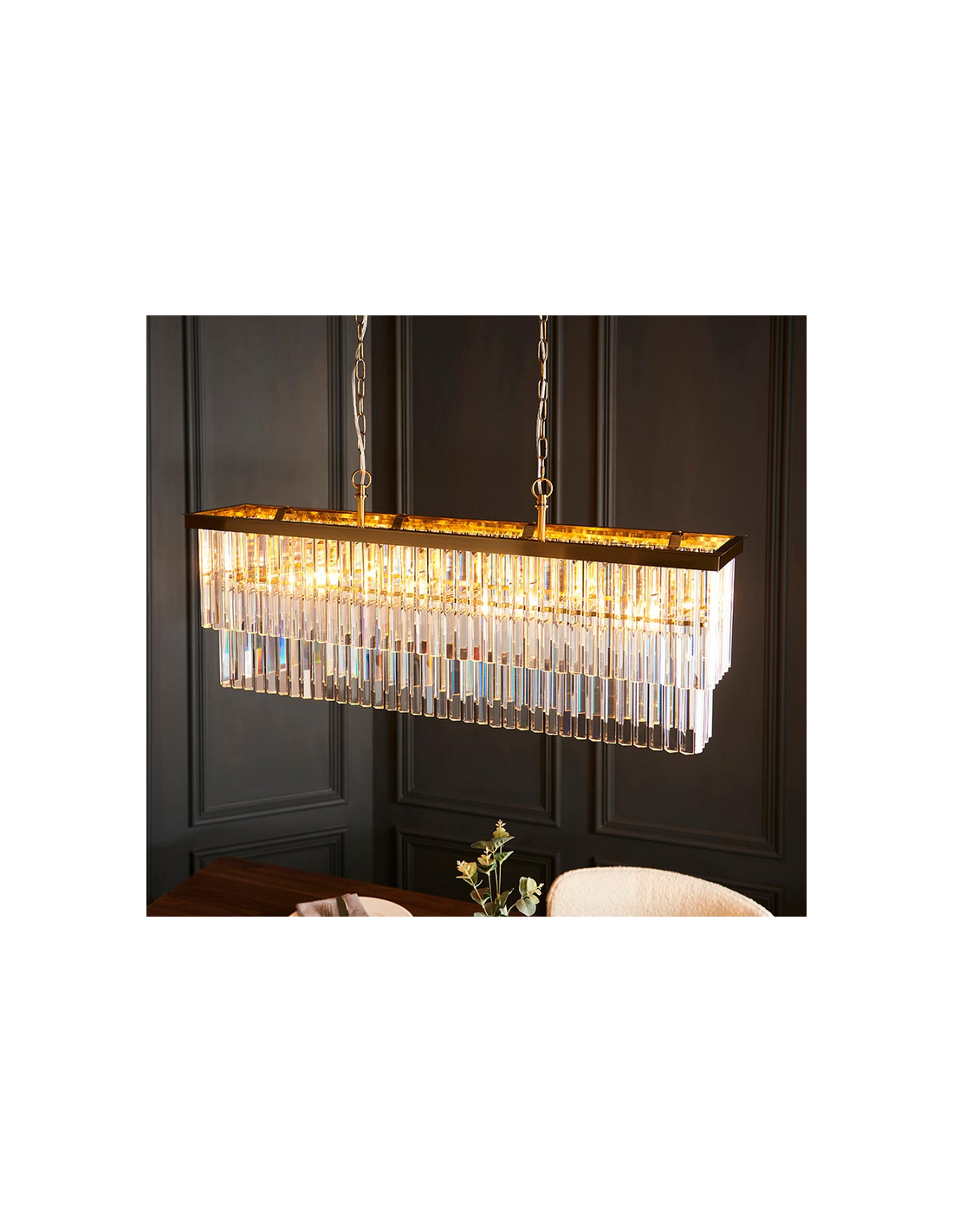 CONASTON Lysekrone i stål og glas 100 x 20 cm 4 x E14 - Varm messing/Klar