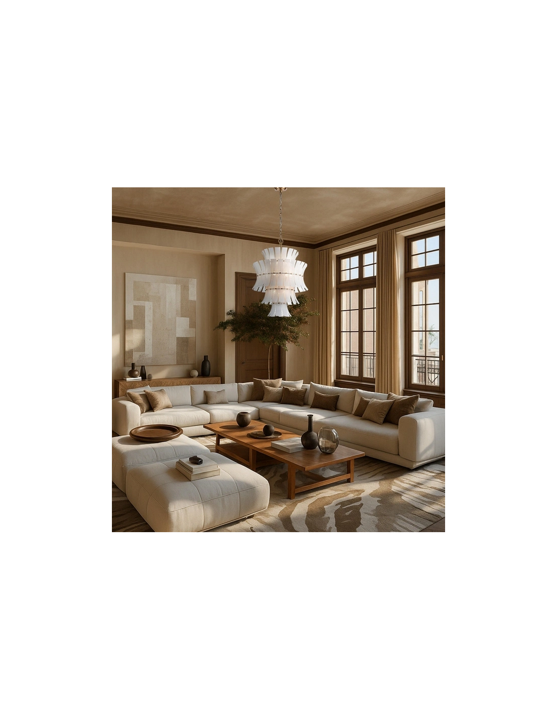 LANCASTER Lysekrone i metal og glas Ø56 cm 13 x E14 - Børstet messing/Hvid