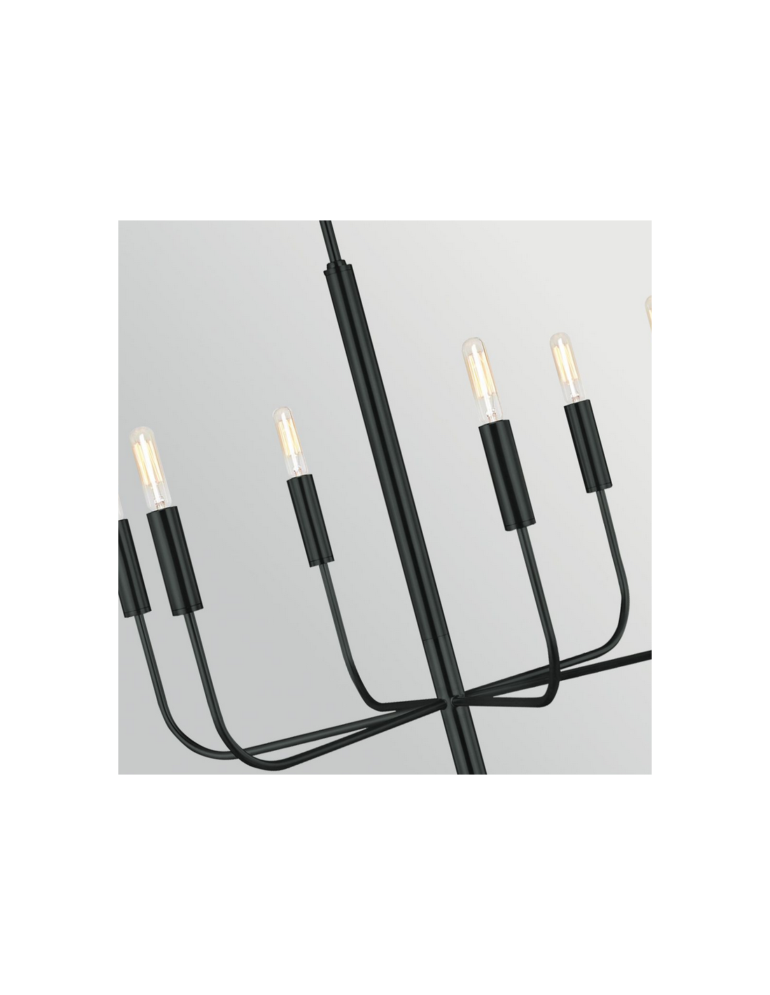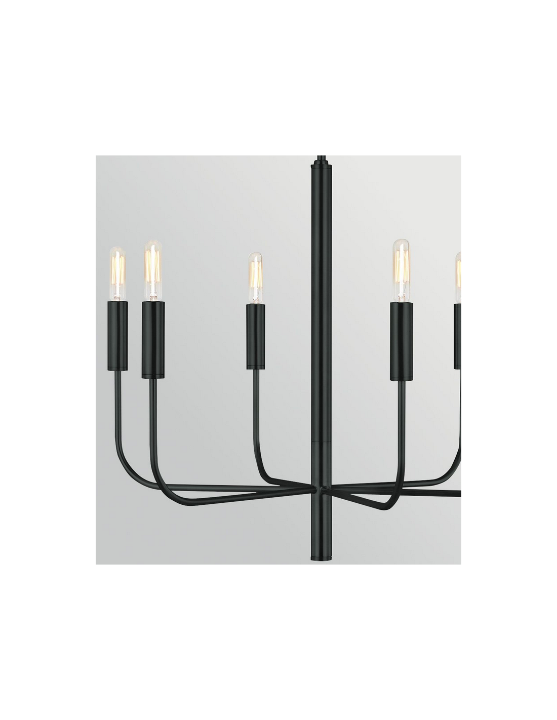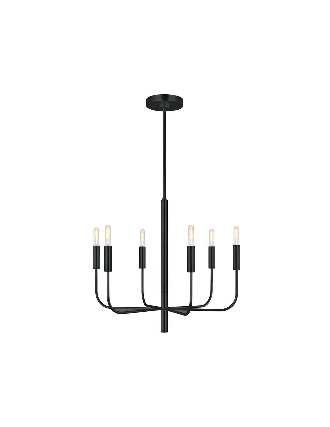 BRIANNA Lysekrone udført i et design fremstillet af sortlakeret stål. Lysekronen leveres til europæisk standard til 6 x E14 lyskilder og måler 61 cm i diameter.