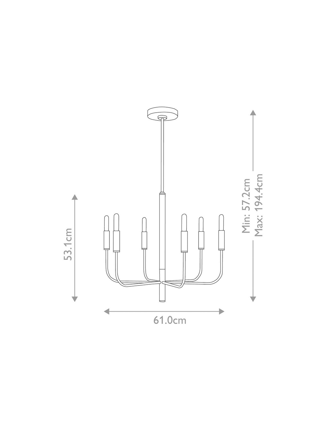 • Lyskilde: 6 x E14, 220-240v 50hz, max. 60W (Ekskl.)