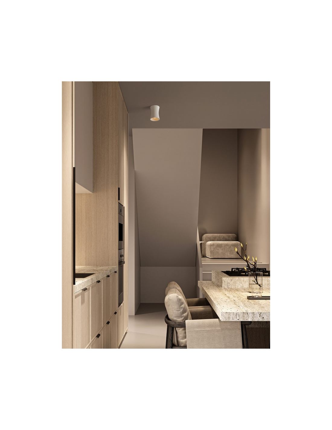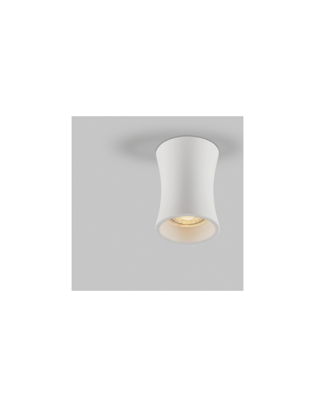 PELIA Påbygningsspot i et moderne design fremstillet i hvid gips, der kan males, eventuelt i samme farve som loftet. Påbygningsspotten måler 11 cm i højde/fremspring og 8 cm i diameter og anvender 1 x GU10 lyskilde (Ekskl.).